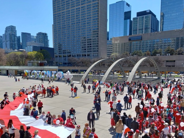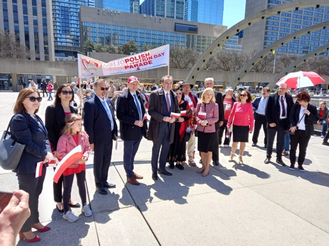 Następnie spod znaku „Toronto” na Nathan Philips Square ruszyła barwna biało-czerwona parada, którą zorganizował Kongres Polonii Kanadyjskiej. W paradzie udział wzięli: przedstawiciele organizacji polonijnych, uczniowie szkół polonijnych, harcerze oraz licznie przybyła Polonia.