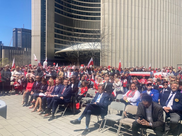 Uroczystości rozpoczęły się od podniesienia flagi polskiej przed ratuszem miasta Toronto. Następnie wystąpieniami gości honorowych: Ministra Adama Kwiatkowskiego, Ambasadora RP w Kanadzie – Witolda Dzielskiego, Burmistrza Toronto – John Tory, Prezesa Kongresu Polonii Kanadyjskiej – Janusza Tomczaka, Prezesa Kongresu Ukraińskiego – Peter’a Schturyn oraz Natalii Kusendovej i Władysław Lizonia.