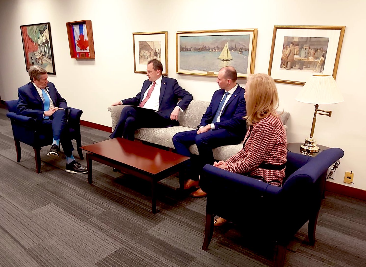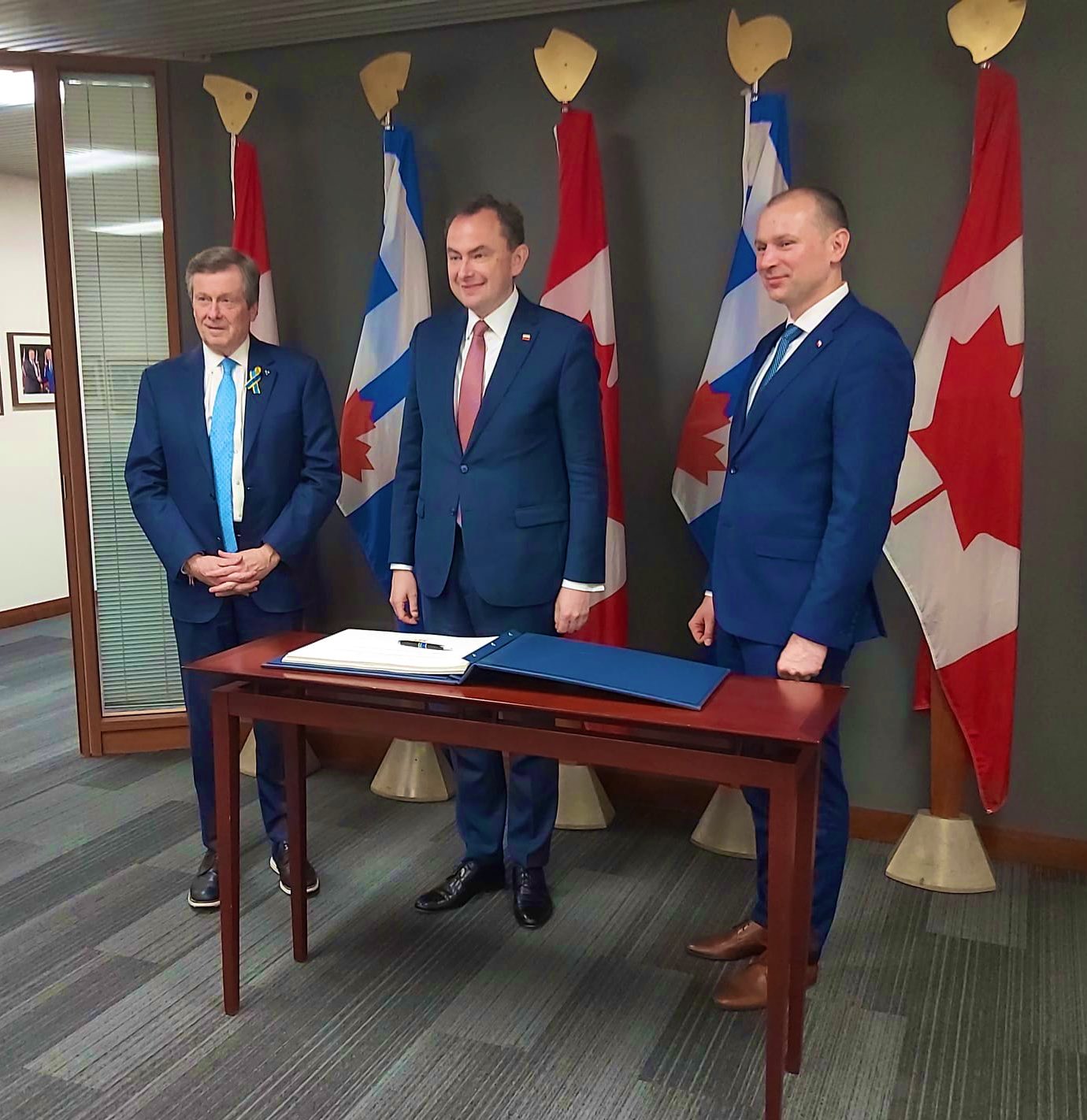 Minister Adam Kwiatkowski podczas wizyty spotkał się z Burmistrzem Toronto John’em Tory. W spotkaniu wziął udział Ambasador Witold Dzielski oraz Konsul Generalna RP w Toronto Magdalena Pszczółkowska. Rozmowy dot. sytuacji Polonii, polskiego dziedzictwa w Kanadzie, jak również pomocy humanitarnej udzielanej przez Polskę w Ukrainie.