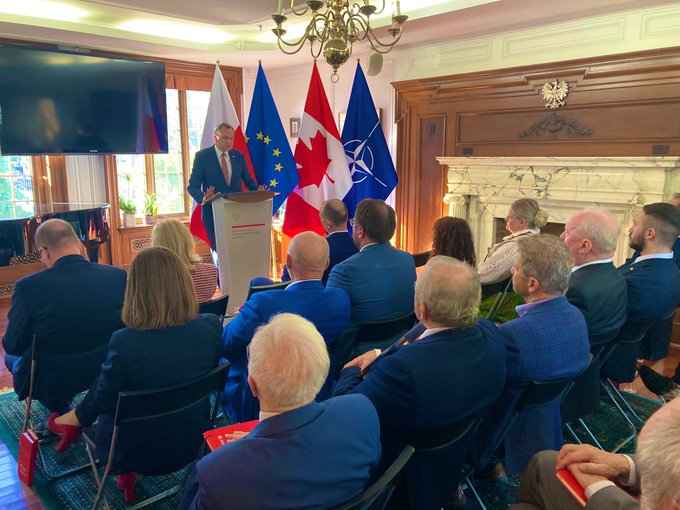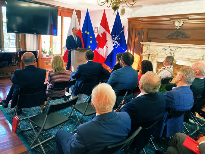 Wieczorem w Konsulacie Generalnym RP w Toronto odbyło się spotkanie polonijne, podczas którego Pan Minister Adam Kwiatkowski omówił kwestie pomocy humanitarnej udzielanej Ukrainie, aktywności Pani Prezydentowej Agaty Kornhauser-Duda oraz skali pomocy Polonii dla uchodźców. Natomiast Ambasador Witold Dzielski przedstawił swoje priorytety dotyczące polsko-kanadyjskiej współpracy politycznej i gospodarczej oraz podziękował za aktywność Polonii, podtrzymywanie więzi z Polską i realizację wielu wspólnych inicjatyw.