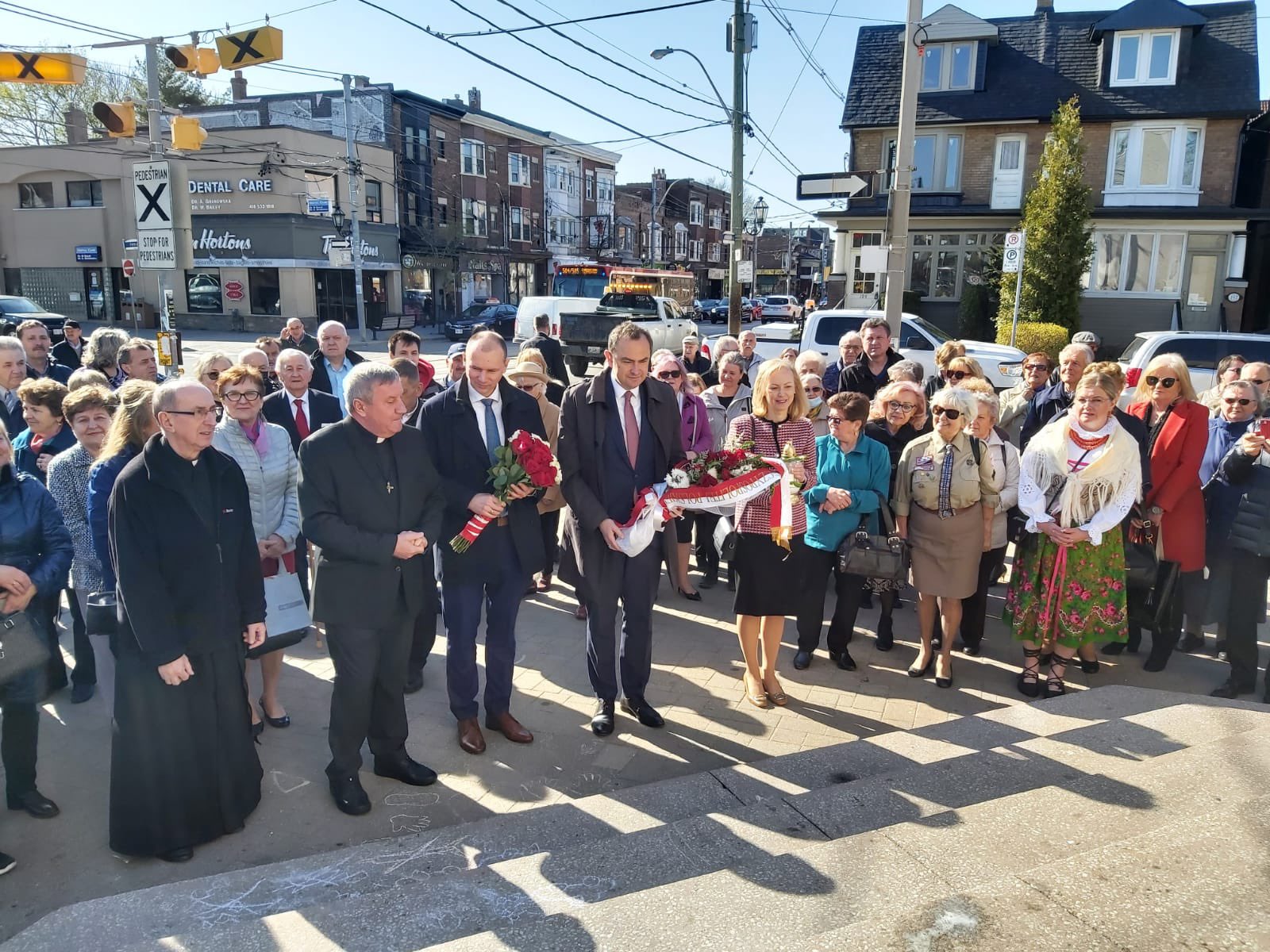 Przed paradą Minister Adam Kwiatkowski, Ambasador Witold Dzielski, Konsul Generalna RP Magdalena Pszczółkowska oraz Konsul RP w Ottawie Natalia Kubik wzięli udział we Mszy Św. za Ojczyznę w Kościele Św. Kaźmierza. Mszę Św. sprawował Proboszcz Parafii o. Janusz Błażejak -Przewodniczący Konferencji Polskich Księży na Wschodnią Kanadę. Następnie oddano hołd Papieżowi Polakowi pod Pomnikiem na Roncesvalles Ave.