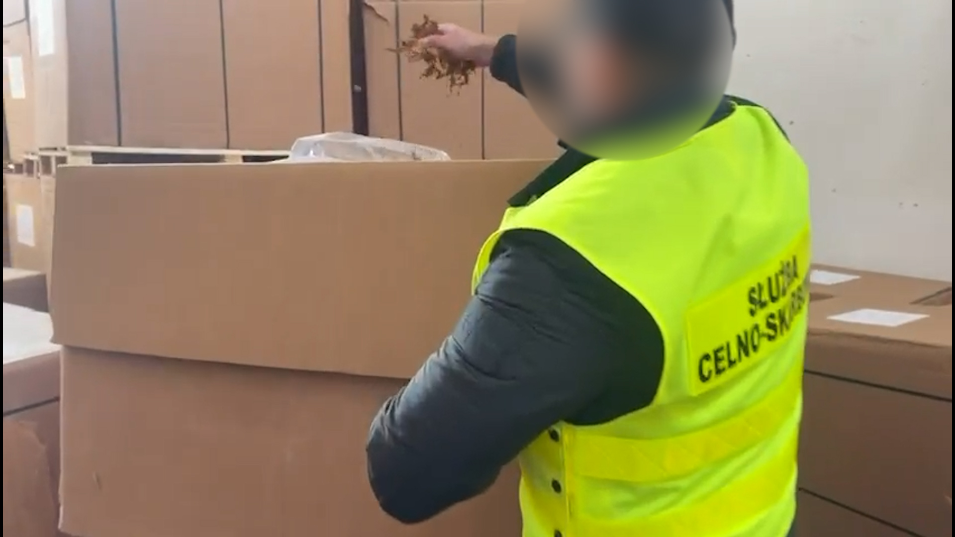 Po przybyciu pod jeden ze wskazanych przez Prokuraturę adresów funkcjonariusze zastali mężczyznę. Oświadczył, że prowadzi w tym miejscu firmę zajmującą się sprzedażą i magazynowaniem mebli. W wyniku dalszych działań okazało się, że znajdują się tam również tytoń do palenia bez polskich znaków akcyzy, odpady tytoniu i pył tytoniowy.