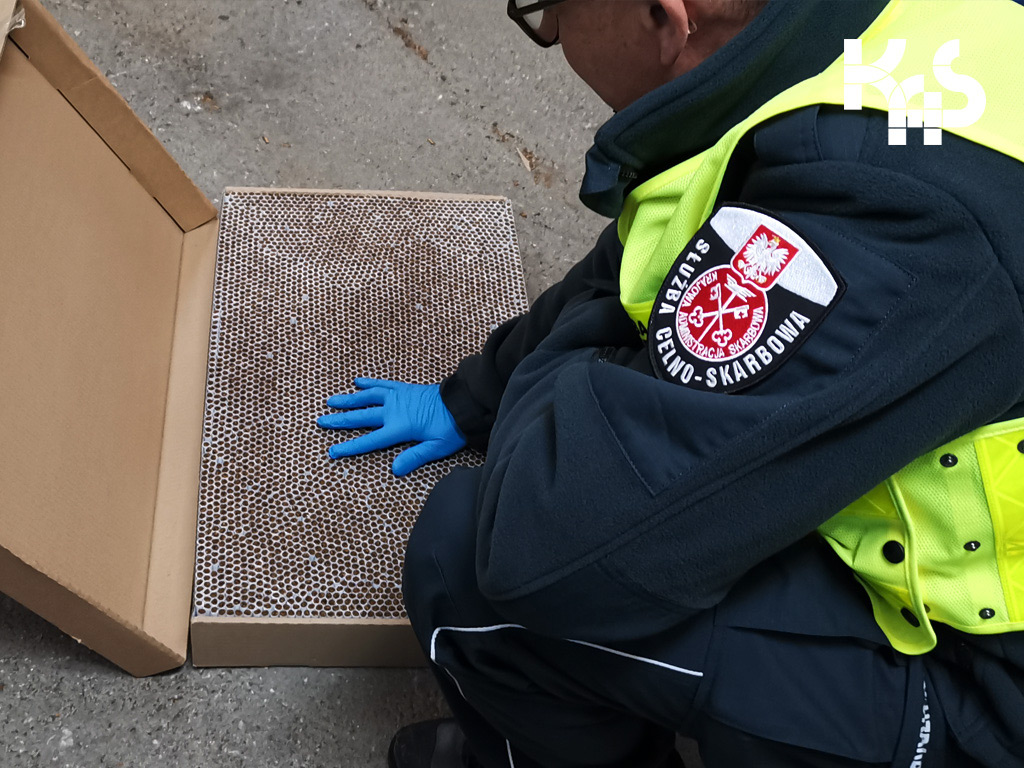 KAS skontrolowała na drodze DK1 samochód ciężarowy. W przestrzeni ładunkowej samochodu znajdowało się 9 zafoliowanych palet. Kierowca wyjaśnił, że nie wie co przewozi. Z dokumentów wynikało, że na paletach powinny być bakalie, które miały trafić do odbiorcy z południa Europy.