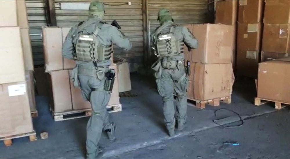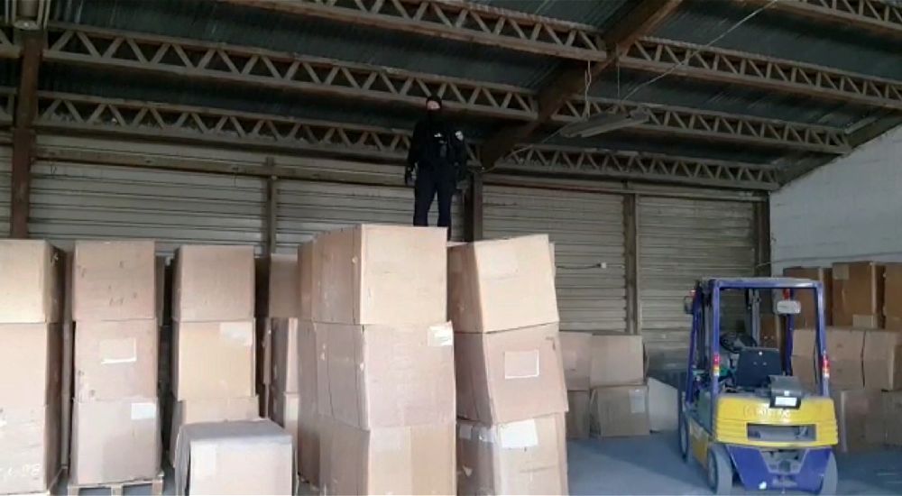 Materiał wideo z audiodeskrypcją pt. 20 ton nielegalnego suszu tytoniowego w magazynie