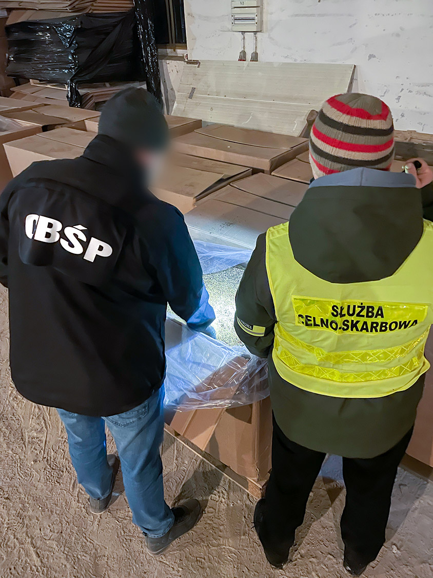Na terenie pow. golubsko-dobrzyńskiego skontrolowano halę magazynową i pojazdy. Funkcjonariusze wykryli prawie 11 ton tytoniu do palenia oraz ponad 20 ton suszu tytoniowego. Zabezpieczyli linię technologiczną do krojenia tytoniu, agregat prądotwórczy, zestawy filtrujące oraz szereg środków służących do nawilżania i aromatyzowania tytoniu, a także dokumenty i 13,5 tys. złotych w gotówce.