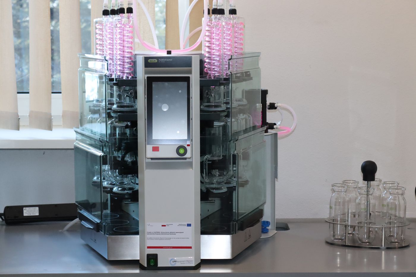 - Izba Administracji Skarbowej w Warszawie – dla potrzeb Centralnego Laboratorium Celno-Skarbowego zakupiła automatyczny aparat do ekstrakcji wraz z hydrolizatorem, prasę hydrauliczna, spektrometr FT IR, chromatograf cieczowy HPLC DAD/RID