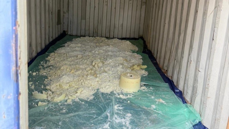 Funkcjonariusze wykryli laboratorium oraz aparaturę stanowiącą linię produkcyjną przeznaczoną do produkcji. W kontenerach morskich znaleźli odczynniki i środki chemiczne ok. 5 ton będące prekursorami do produkcji niebezpiecznych substancji.