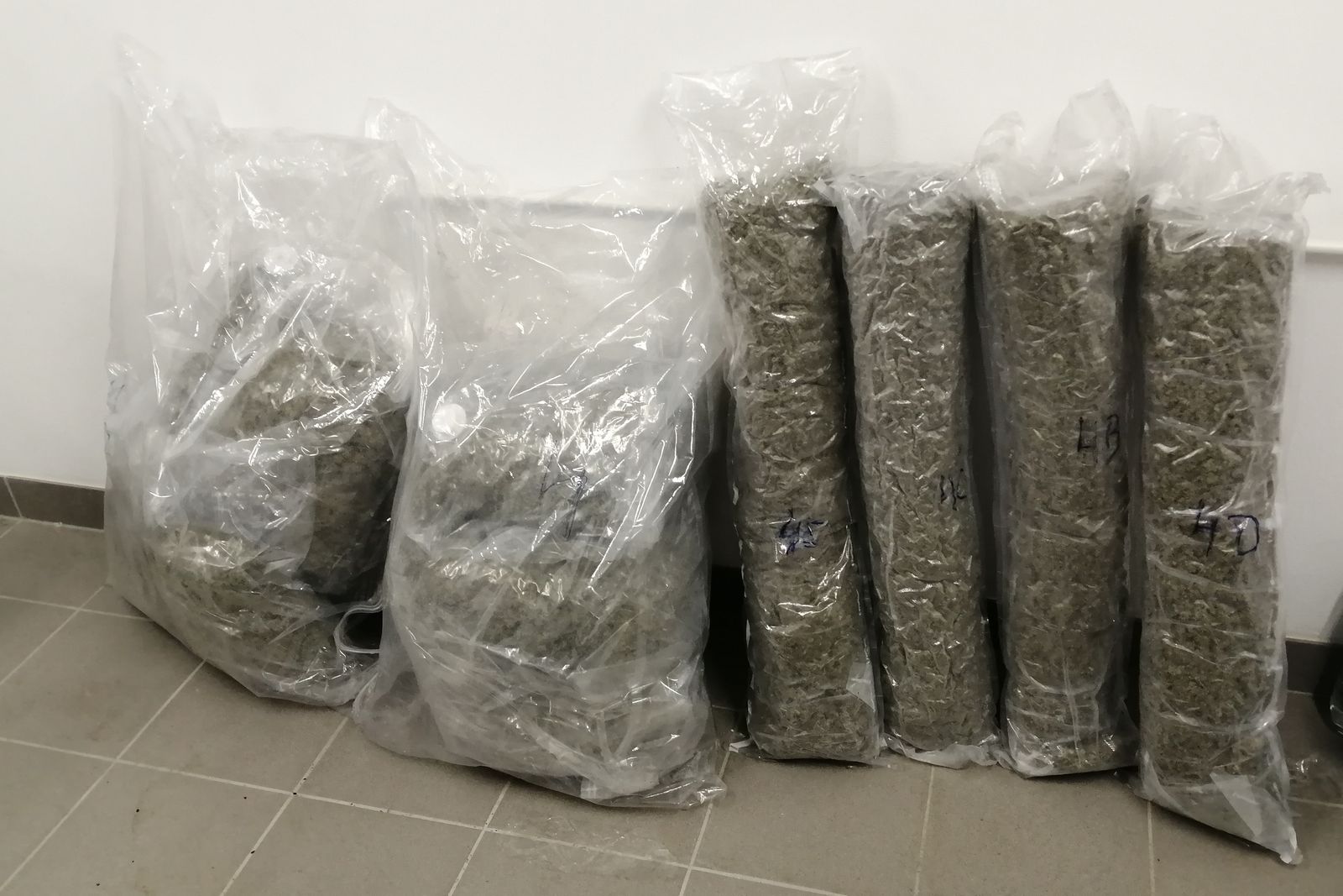 W okolicy auto portu „Godzieszów” kierowcy dwóch samochodów ciężarowych przeładowywali ładunki z jednego pojazdu do drugiego. Funkcjonariusze KAS i CBŚP skontrolowali pojazdy. Aria oznaczyła zafoliowaną skrzynię transportową. W środku znajdowały się różnej wielkości worki foliowe z suszem roślinnym koloru zielonobrązowego - 18 kg marihuany. Jej wartość rynkowa to ok. 540 tys. zł. Środki odurzające oraz kierowcy zostali zatrzymani przez funkcjonariuszy CBŚP.