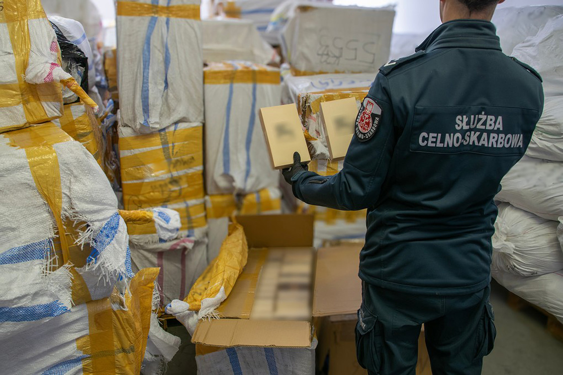 Funkcjonariusze Służby Celno-Skarbowej z Białegostoku skontrolowali halę magazynową w pobliżu centrum handlowego w Wólce Kosowskiej (pow. piaseczyński).