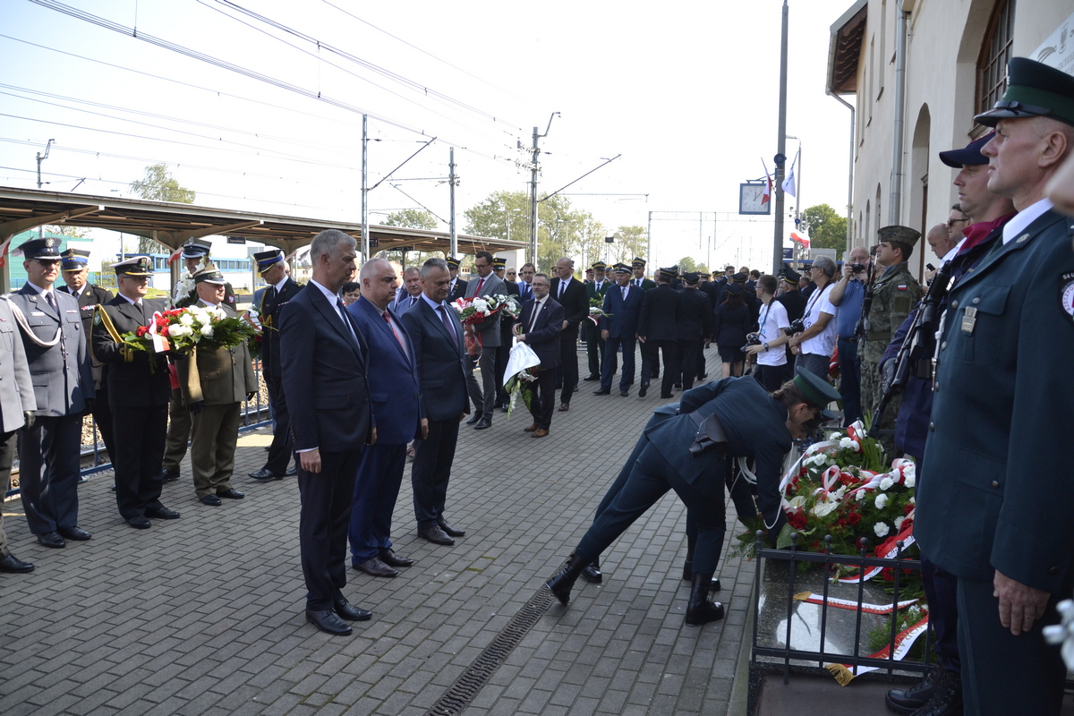 W trakcie uroczystości złożono wieńce pod tablicą pamięci na dworcu kolejowym oraz pod pomnikiem upamiętniającym zamordowanych przez hitlerowców funkcjonariuszy celnych i kolejarzy.