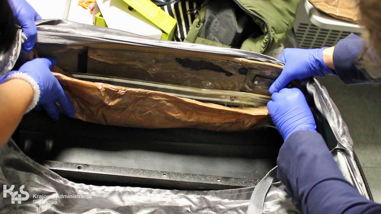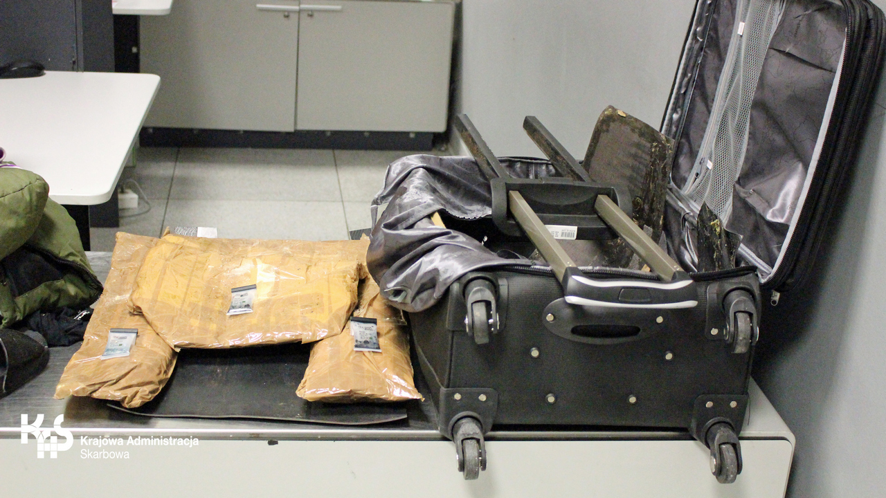 Funkcjonariusze KAS ujawnili trzy pakiety narkotyków ukryte w podwójnych ściankach i dnie walizki. Paczki, o łącznej wadze ponad 5 kilogramów, zawierały beżowy proszek, który został poddany badaniu narkotestem. Wynik wskazał, że podejrzana substancja to heroina. Rezultat testu został potwierdzony w Centralnym Laboratorium Celno-Skarbowym.