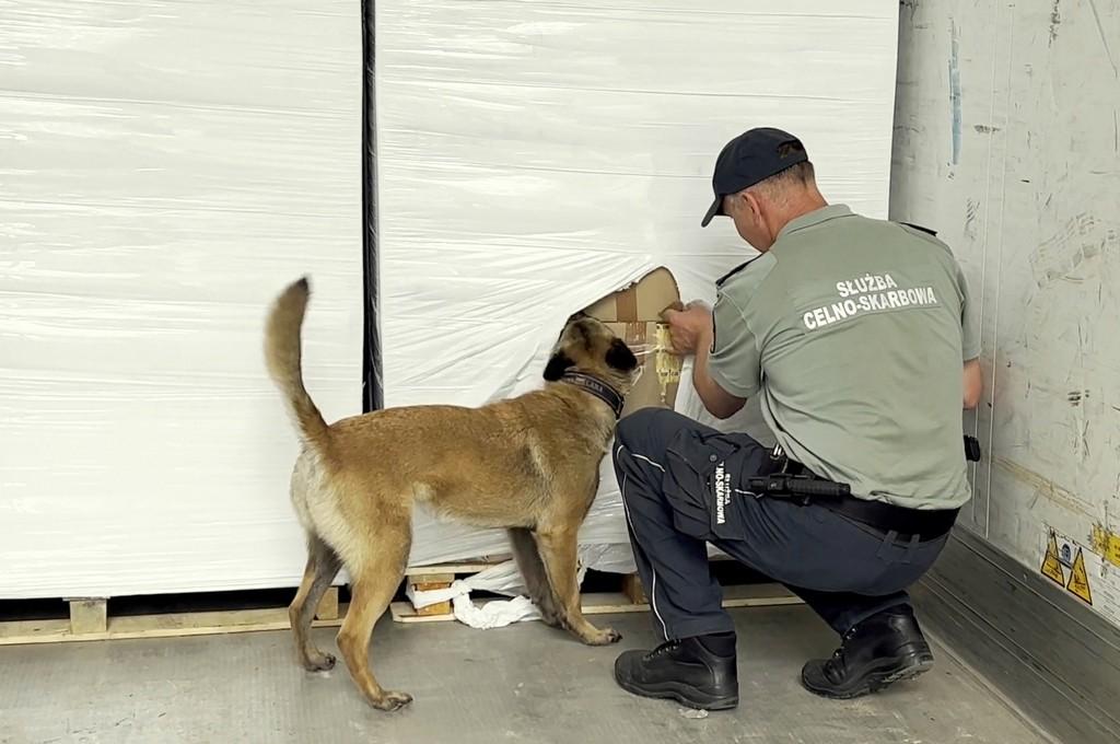 Ciężarówka została prześwietlona. Zamiast deklarowanego towaru funkcjonariusze znaleźli w niej 520 tys. paczek papierosów z rosyjskimi znakami akcyzy. W rewizji naczepy uczestniczyła Hera, pies rasy owczarek belgijski wyszkolony do wykrywania wyrobów tytoniowych.