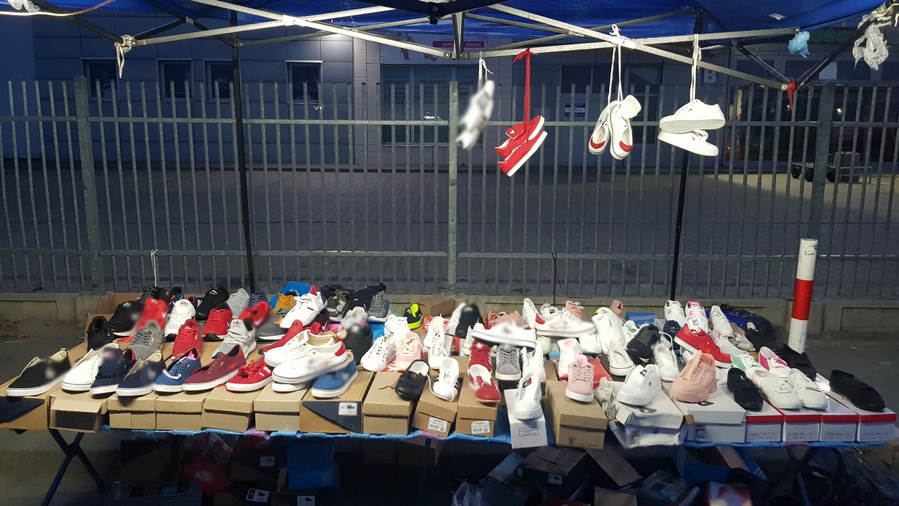 Podczas ostatnich kontroli targowiska w pobliżu Wólki Kosowskiej funkcjonariusze Mazowieckiego Urzędu Celno-Skarbowego ujawnili duże ilości produktów, m.in. odzieży i obuwia z podrobionymi, zastrzeżonymi znakami towarowymi. Realizacja działań kontrolnych odbyła się w późnych godzinach wieczornych i nocnych, aby w pełni wykorzystać element zaskoczenia.
