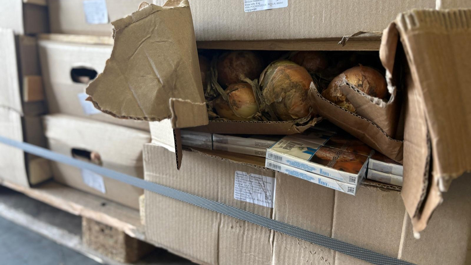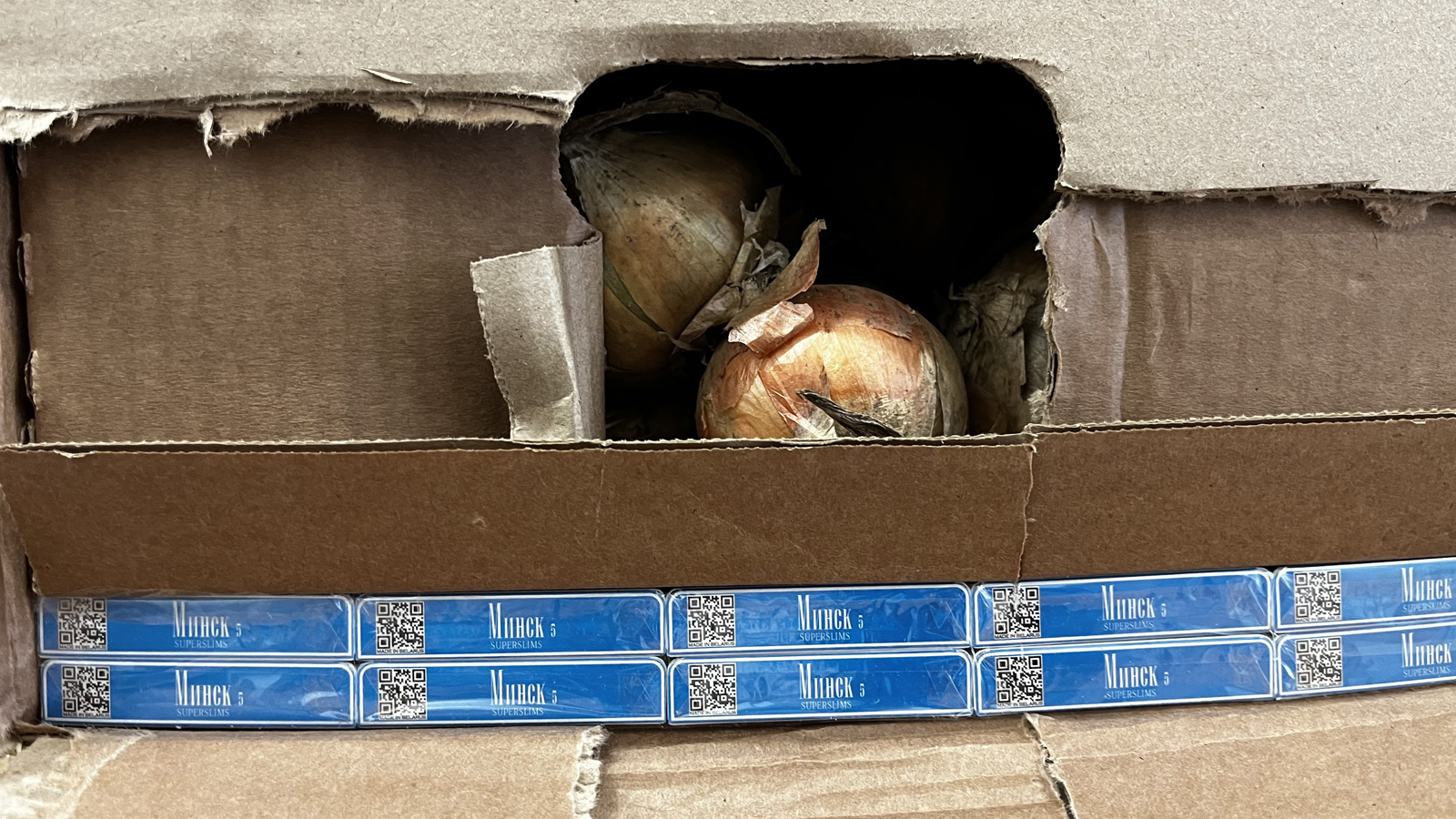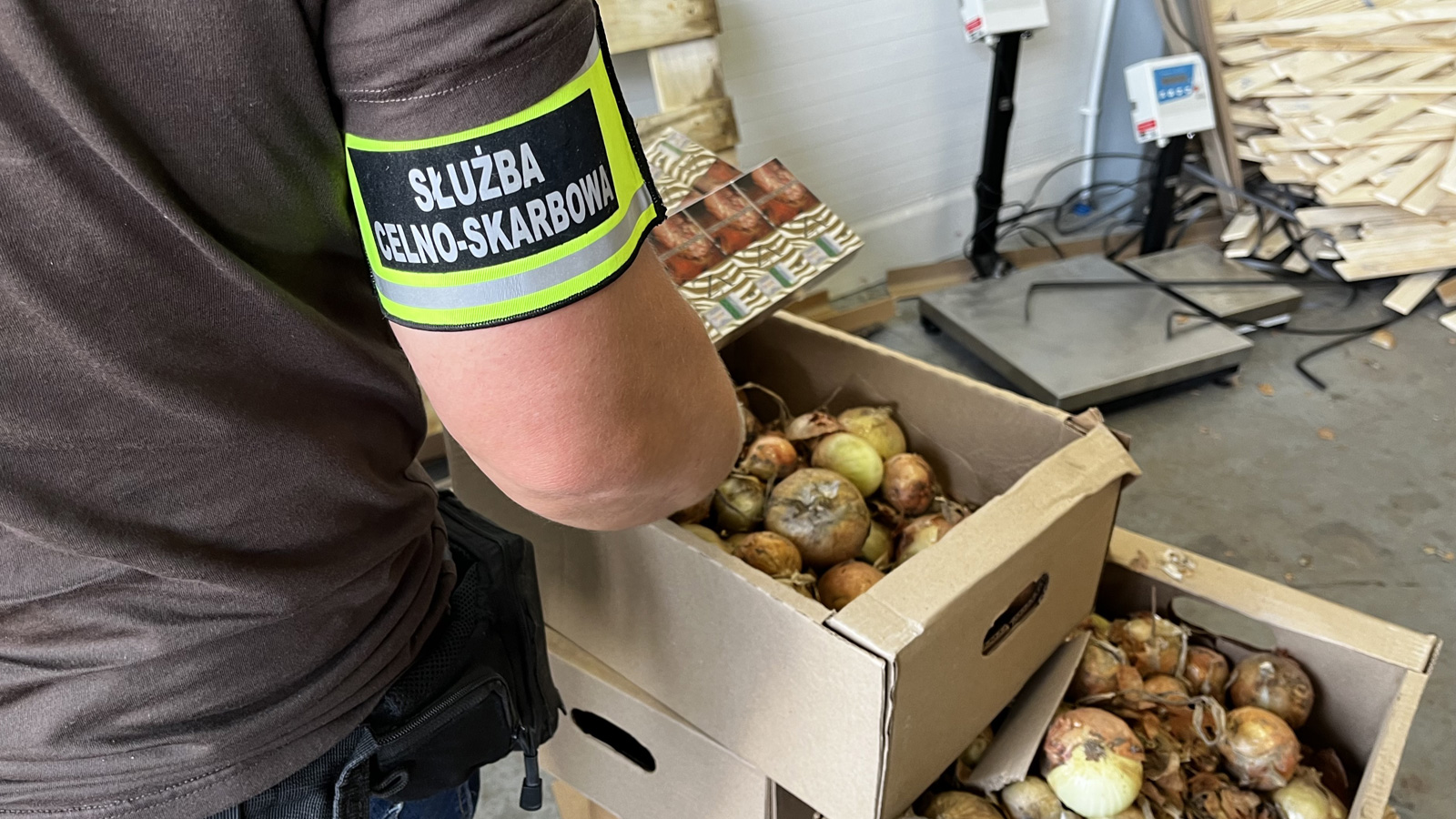 W kartonach z cebulą oraz burakami, funkcjonariusze znaleźli w podwójnym dnie białoruskie papierosy bez polskich znaków akcyzy.