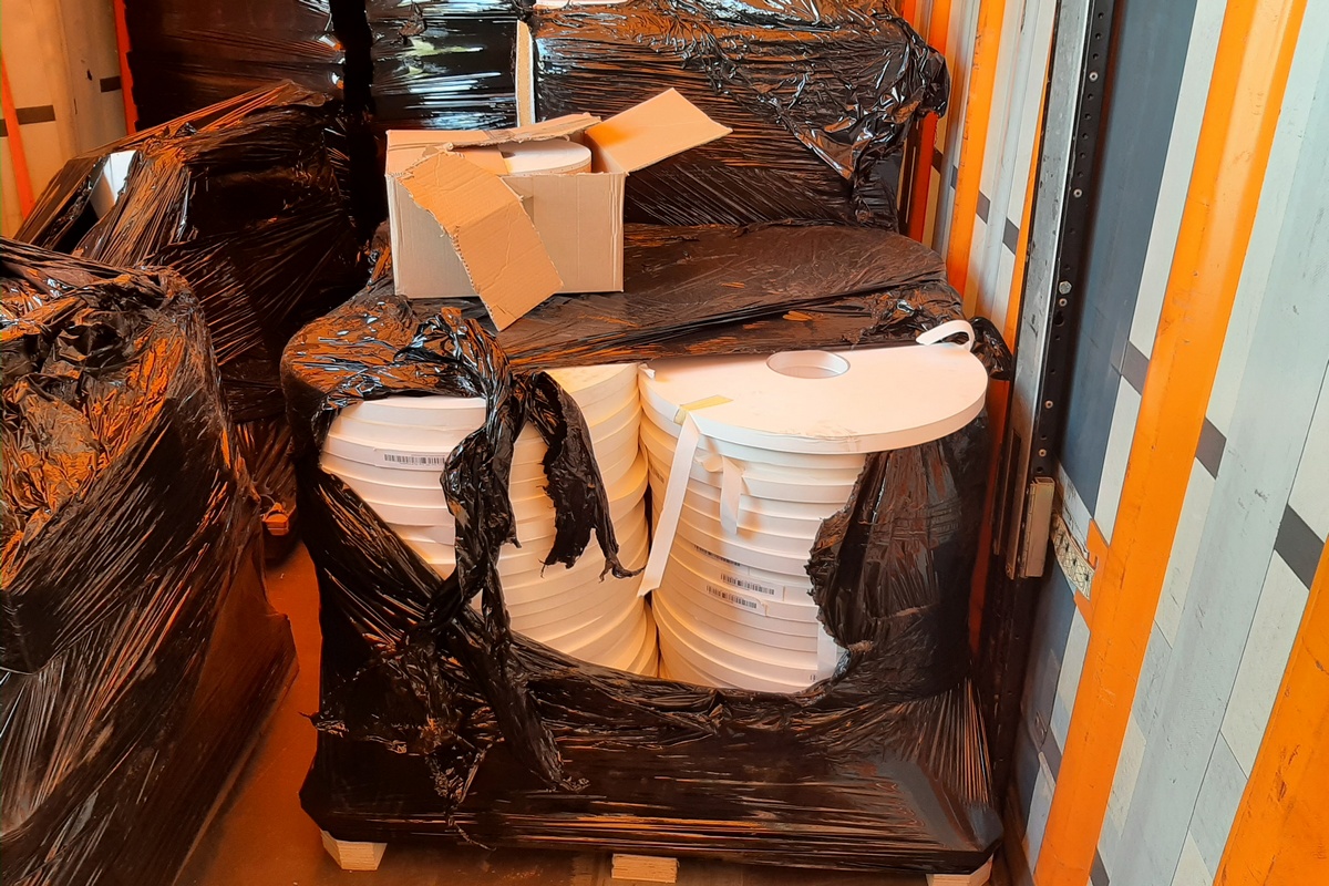 Mundurowi odkryli także 103 rolki oklejki korkowej, spośród których niemal wszystkie miały nadrukowane logo znanej firmy produkującej papierosy. Polski przedstawiciel firmy na podstawie przesłanych zdjęć potwierdził, że oklejka jest towarem podrabianym.