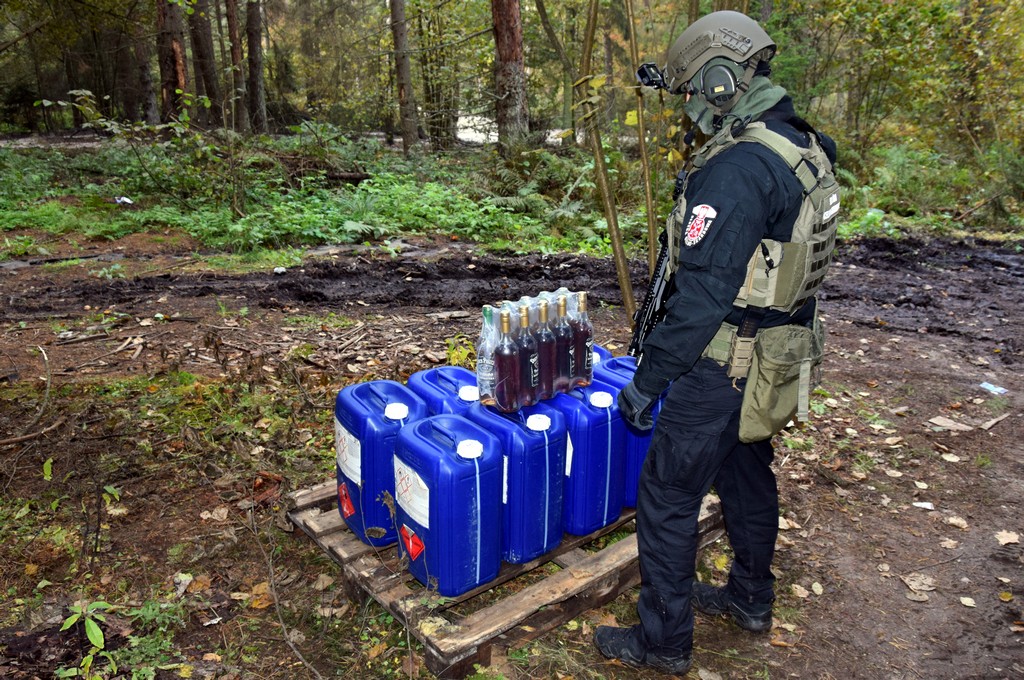 Funkcjonariusze KAS z Podlaskiego Urzędu Celno-Skarbowego w Białymstoku zaskoczyli nadzorujących produkcję alkoholu trzech mężczyzn i ujawnili dwie kompletne linie służące do produkcji bimbru, składające się z m.in. z pieców, chłodnic i zbiorników na zacier. Na terenie bimbrowni funkcjonariusze znaleźli blisko 170 litrów wyprodukowanego alkoholu o mocy ok. 50%, agregaty prądotwórcze, pompy, opał, dwunastometrową studnię głębinową, kadzie zawierające łącznie 8 tys. litrów fermentującego zacieru oraz drożdże i 7 ton mąki. Z ujawnionych półproduktów przestępcy mogliby wyprodukować kolejne ponad 8 tys. litrów nielegalnego alkoholu.