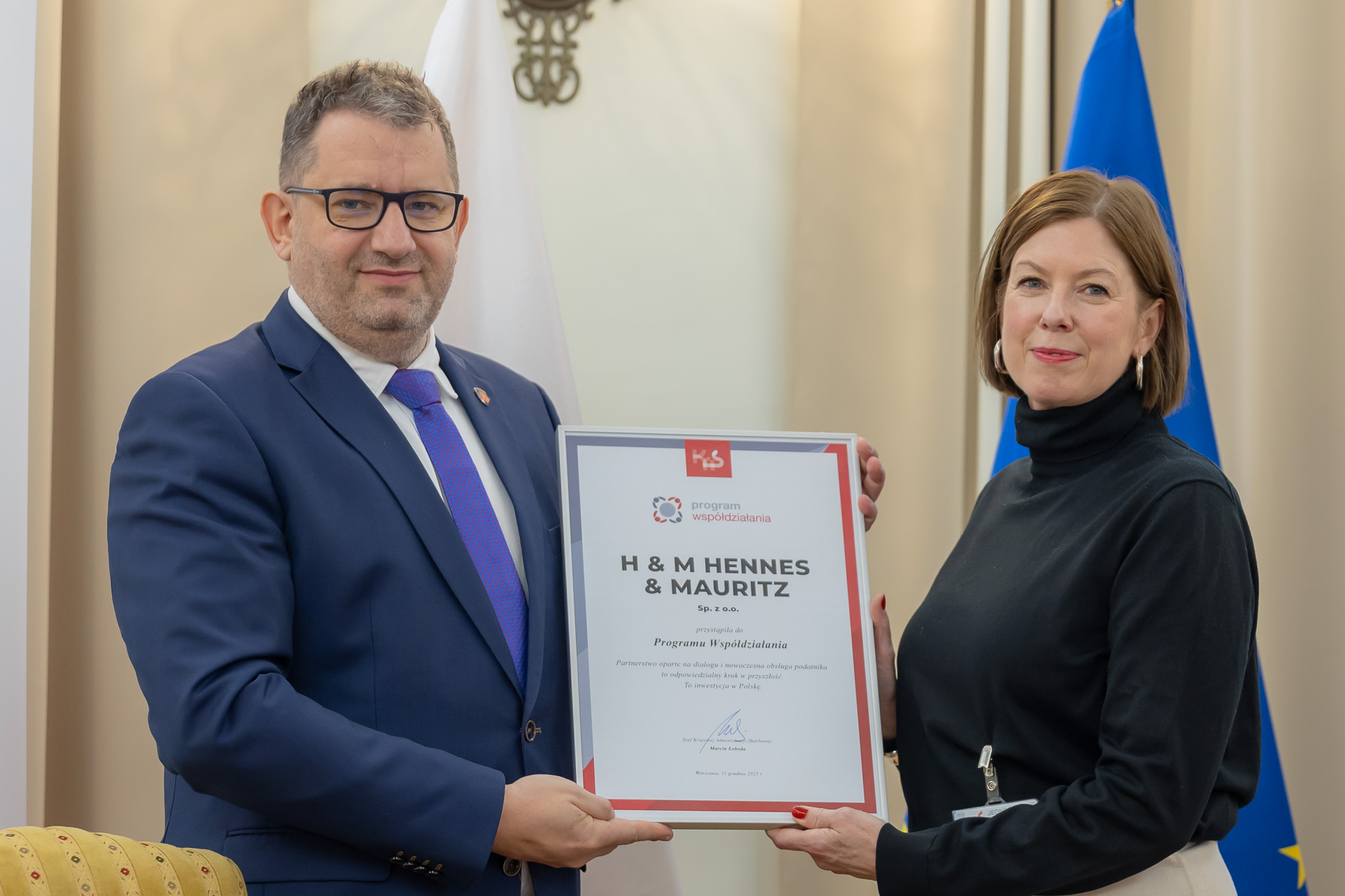 - 11 grudnia 2025 r. Szef Krajowej Administracji Skarbowej Marcin Łoboda podpisał umowę o współdziałanie z H&M Hennes & Mauritz Sp. z.o.o.