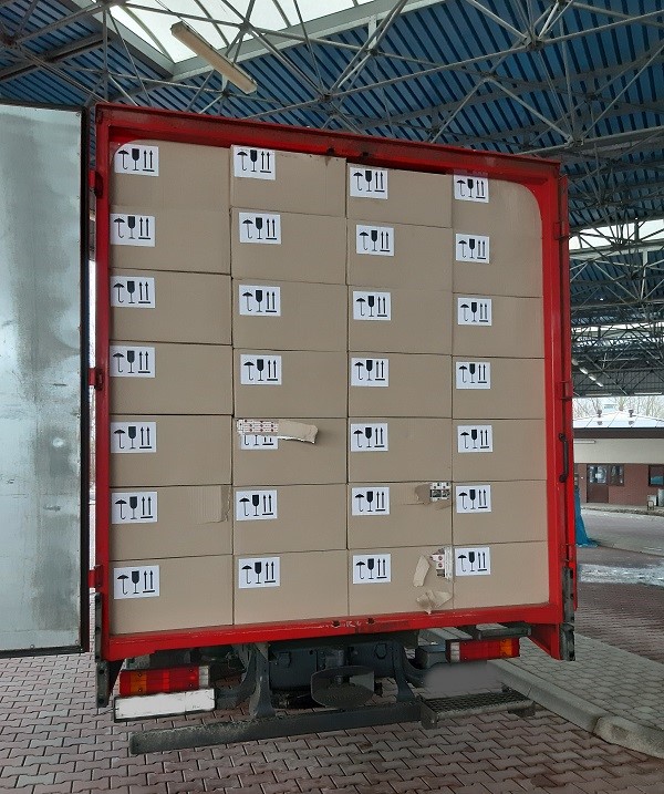 Funkcjonariusze skontrolowali wjeżdżający z Białorusi do Polski przez przejście graniczne w Sławatyczach samochód dostawczy. Kierowca pojazdu, 27-letni obywatel Białorusi, do odprawy zgłosił jedynie 10 felg aluminiowych. W kartonach, którymi wypełniony był cały pojazd, znajdowały się papierosy bez polskich znaków akcyzy.
