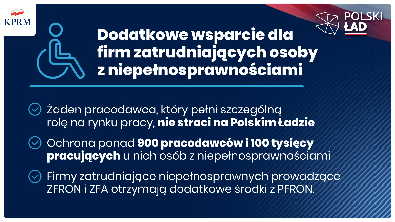 - Wprowadzony zostanie także nowy instrument wsparcia dla pracodawców, którzy tworzą miejsca pracy dla osób z niepełnosprawnościami.