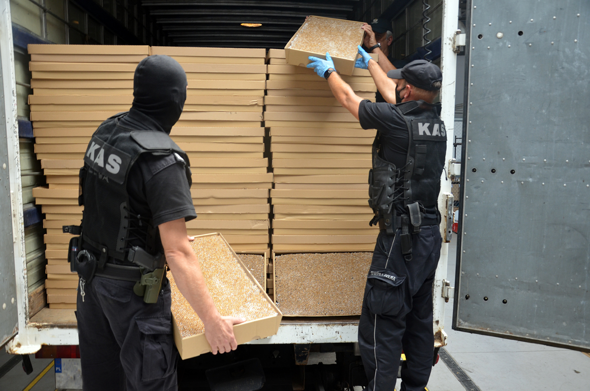 - Kujawsko-pomorska Krajowa Administracja Skarbowa (KAS) zatrzymała 1,2 mln szt. papierosów bez znaków akcyzy.