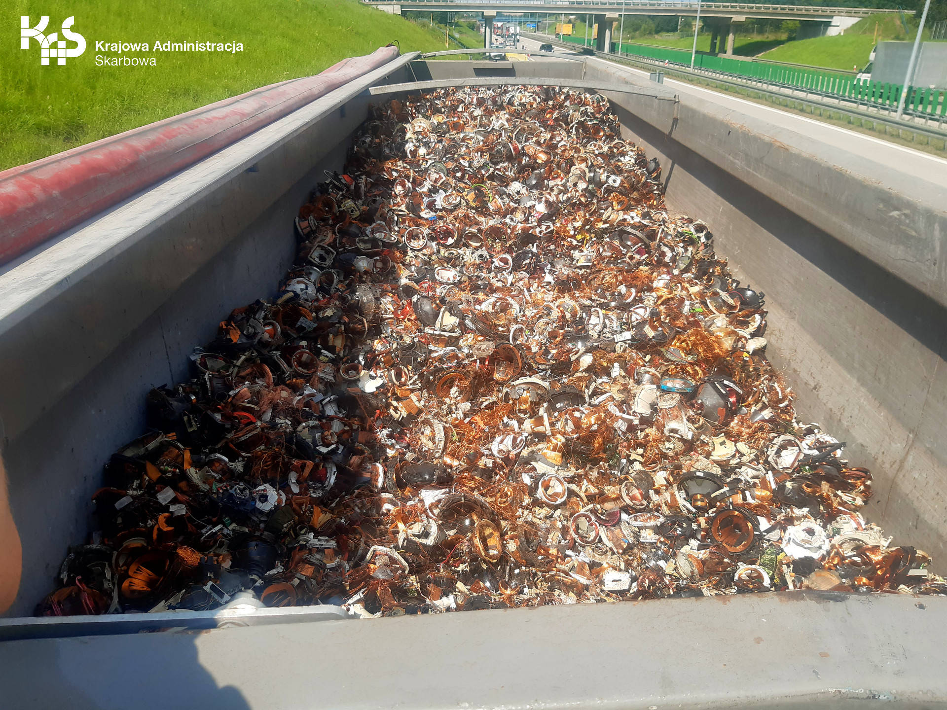 Podczas kontroli na autostradzie A4, funkcjonariusze KAS wykryli nielegalny przewóz odpadów do Polski. KAS zapobiegła przywozowi prawie 24 ton zużytych cewek elektrycznych.