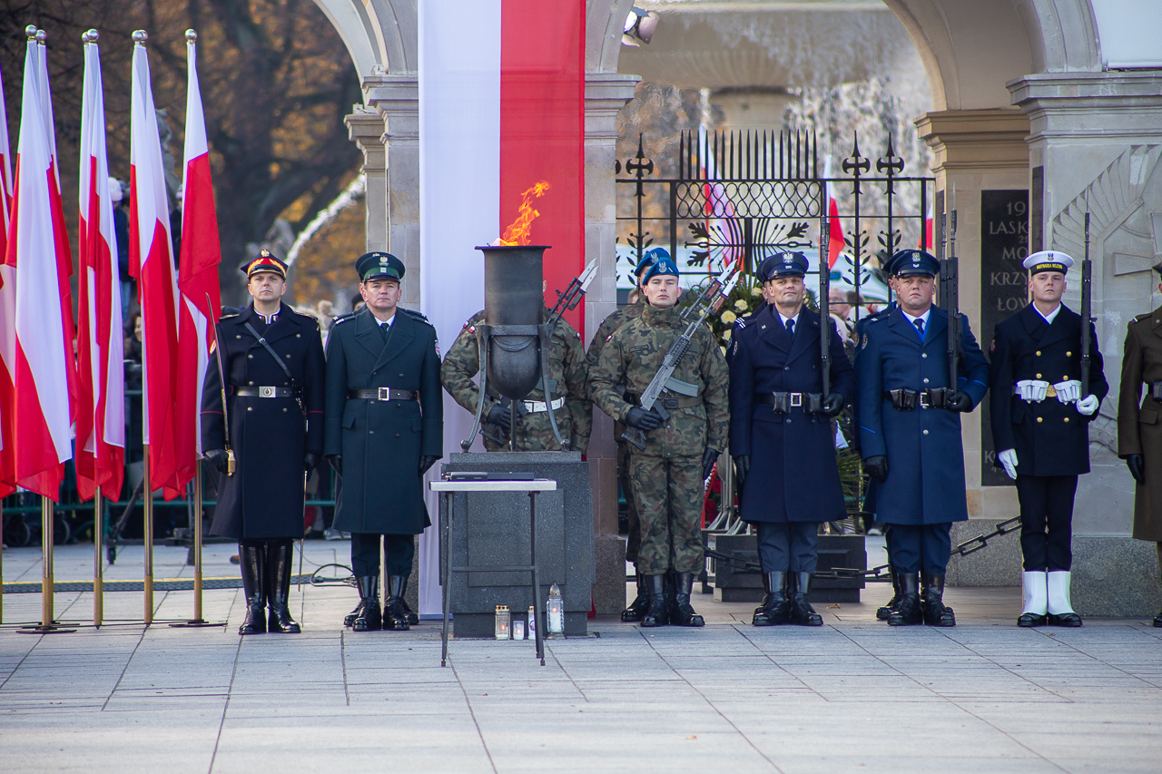 Aby uczcić pamięć wszystkich, którzy walczyli o niepodległość Polski, odczytano Apel Pamięci. Pluton salutowy oddał serię 21 salw armatnich, a harcerze złożyli na płycie Grobu Nieznanego Żołnierza znicz z Ogniem Niepodległości.
