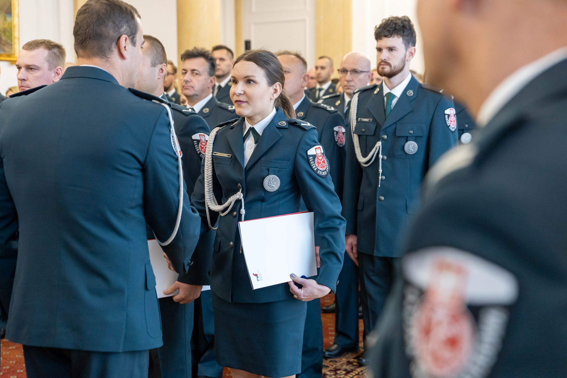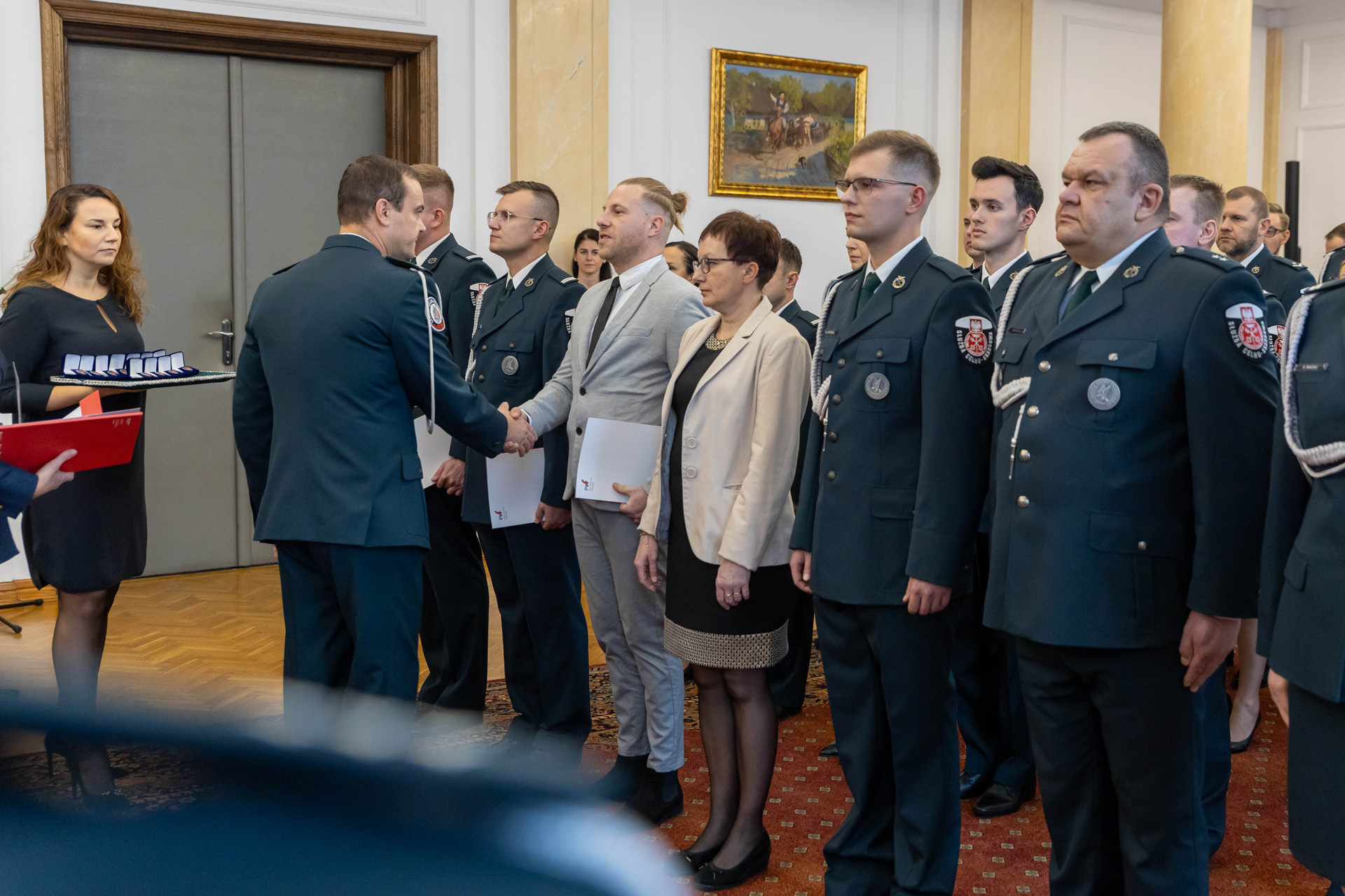 Szef KAS insp. Bartosz Zbaraszczuk, zastępca szefa KAS Anna Chałupa wręczyli wyróżnienia za szlachetną, odważną postawę, wykraczającą poza codzienne obowiązki służbowe.