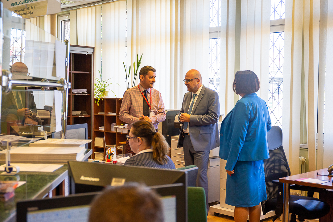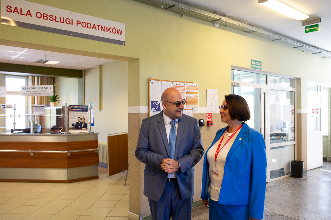 Wizyta Szefa KAS była okazją do rozmów z kierownictwem i pracownikami o realizowanych zadaniach i wynikach urzędu m. in. w obszarach obsługi klienta, poboru podatków, kontroli podatkowej oraz egzekucji administracyjnej.
