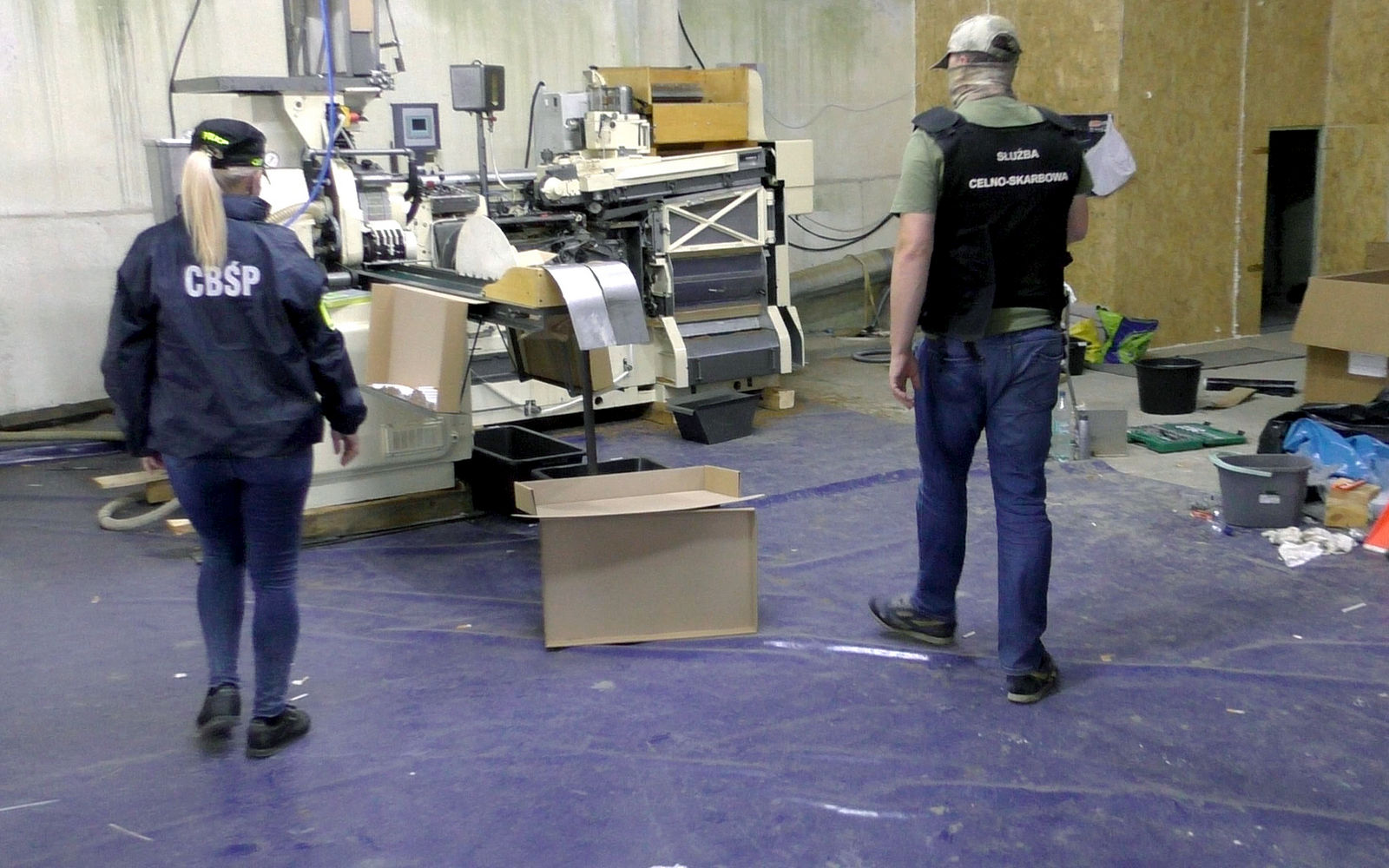Pierwsza akcja KAS i CBŚP, pod nadzorem Prokuratury Krajowej w Lublinie, została przeprowadzona na terenie powiatu piaseczyńskiego. Przeszukaliśmy 4 obiekty i zatrzymaliśmy 8 mężczyzn w wieku od 25 do 50 lat, w tym 6 obywateli Ukrainy. Zabezpieczyliśmy kompletną linię produkcyjną, w tym specjalistyczną maszynę do produkcji papierosów o wydajności milion papierosów dziennie. Ponadto: 1 mln nielegalnych papierosów, ponad tonę krajanki tytoniowej i półprodukty do produkcji wyrobów tytoniowych. Jeden z zatrzymanych Polaków był poszukiwany listem gończym.