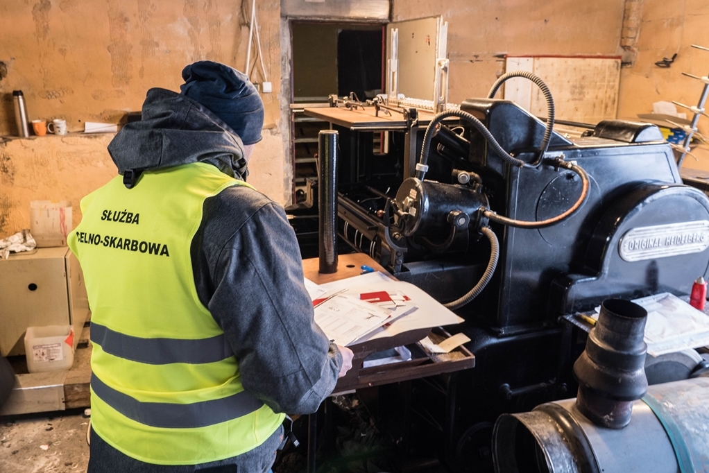 Policjanci z Centralnego Biura Śledczego Policji z Zarządu w Katowicach Wydziału w Bielsku-Białej wspólnie z funkcjonariuszami KAS ze Śląskiego Urzędu Celno-Skarbowego w Katowicach, pod nadzorem Prokuratury Okręgowej w Bielsku-Białej ustalili, że na terenie Bielska-Białej, Zasola Bielańskiego i Ligoty, dochodzi do przestępstw akcyzowych. Funkcjonariusze wkroczyli do dwóch hal magazynowych, gdzie ujawnili kompletną i działającą drukarnię opakowań do papierosów znanych marek tytoniowych oraz linię do wykrawania opakowań jednostkowych i zbiorczych.