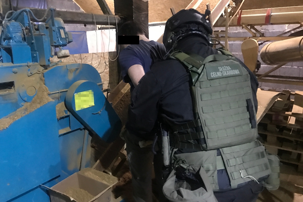 W trakcie przeszukań pomieszczeń gospodarczych w Zasolu Bielańskim funkcjonariusze odkryli magazyn i działającą krajalnię, służącą do cięcia tytoniu. Zabezpieczyli tam 2 tony tytoniu. W kolejnych dwóch magazynach na terenie Bielska Białej i Ligoty ujawnili 4 tony prasowanych liści tytoniu, prawie 5 ton gotowej krajanki tytoniowej i ponad 180 tys. papierosów. Łączna wartość zabezpieczonych wyrobów tytoniowych oraz maszyn do ich produkcji to blisko 5 mln zł. Funkcjonariusze zabezpieczyli także ponad 600 tys. zł w gotówce na poczet przyszłych kar.