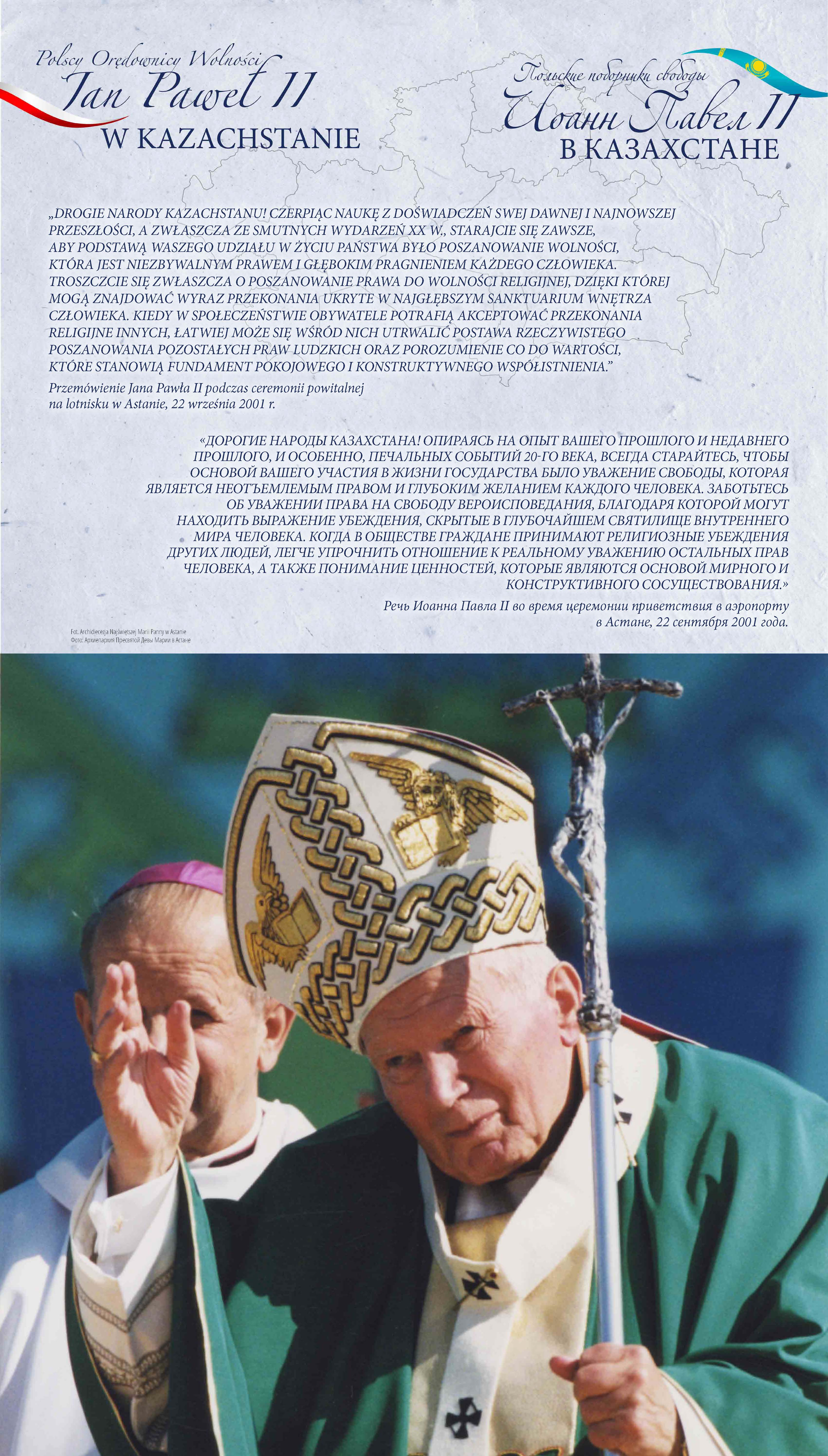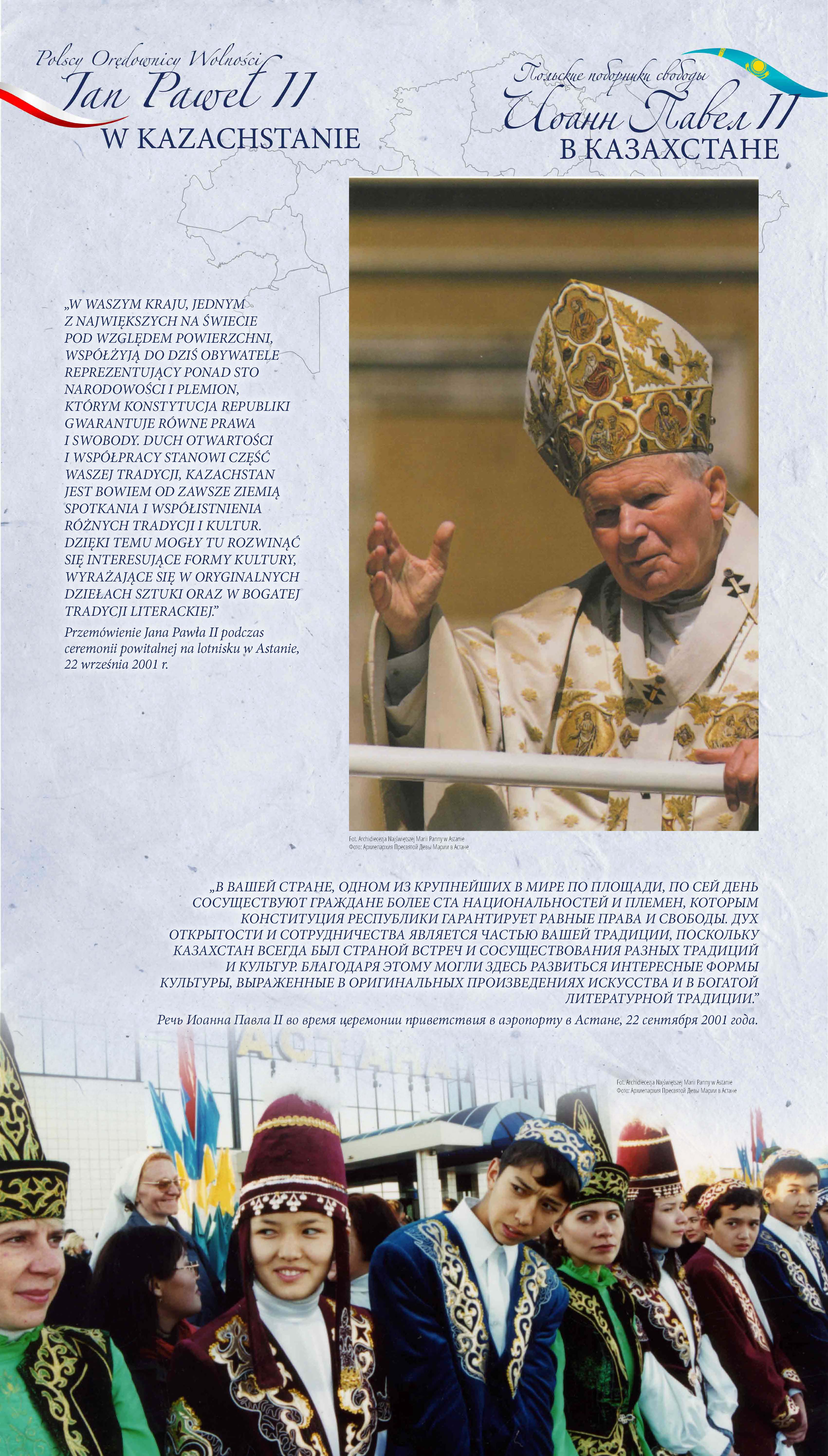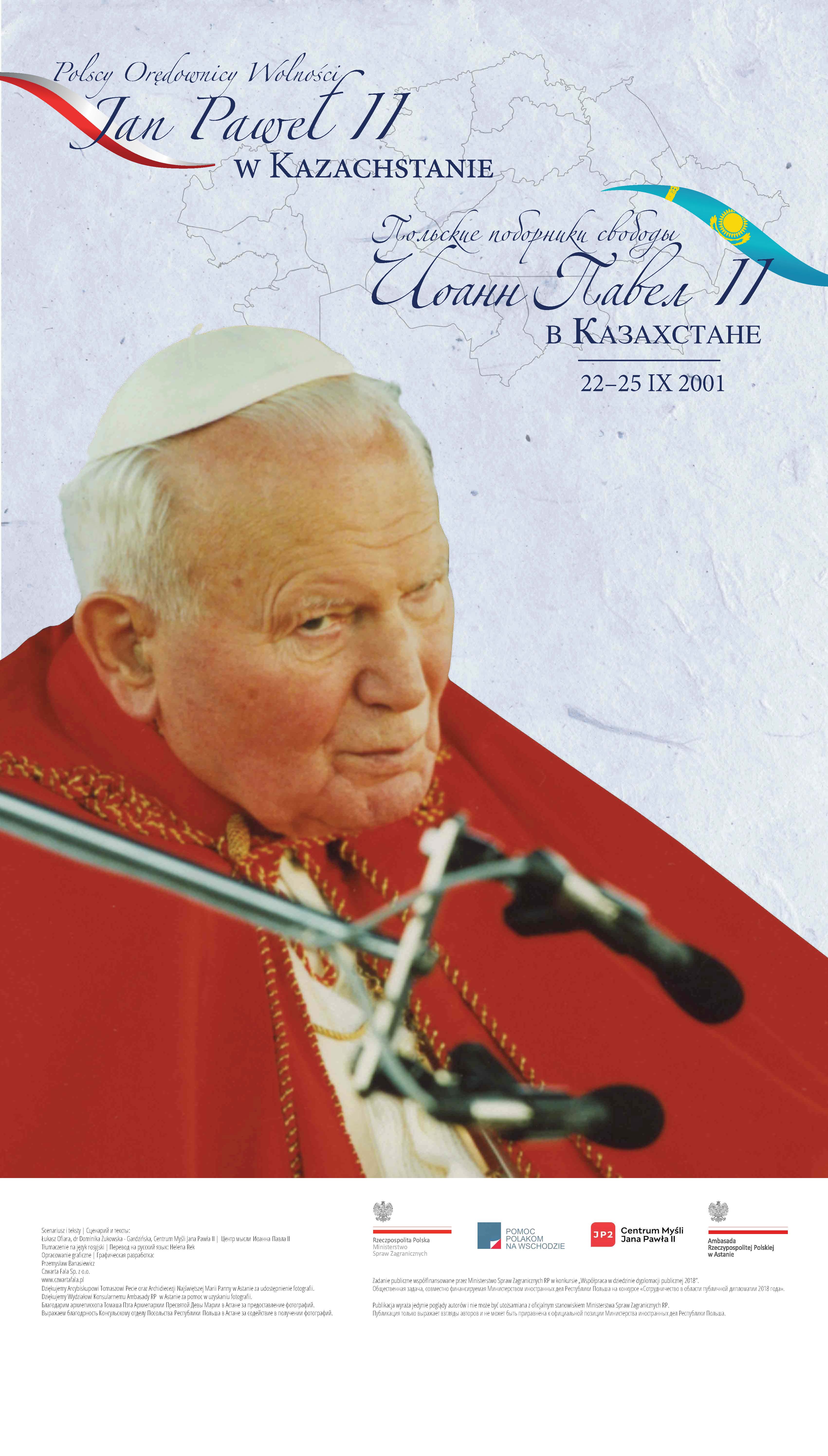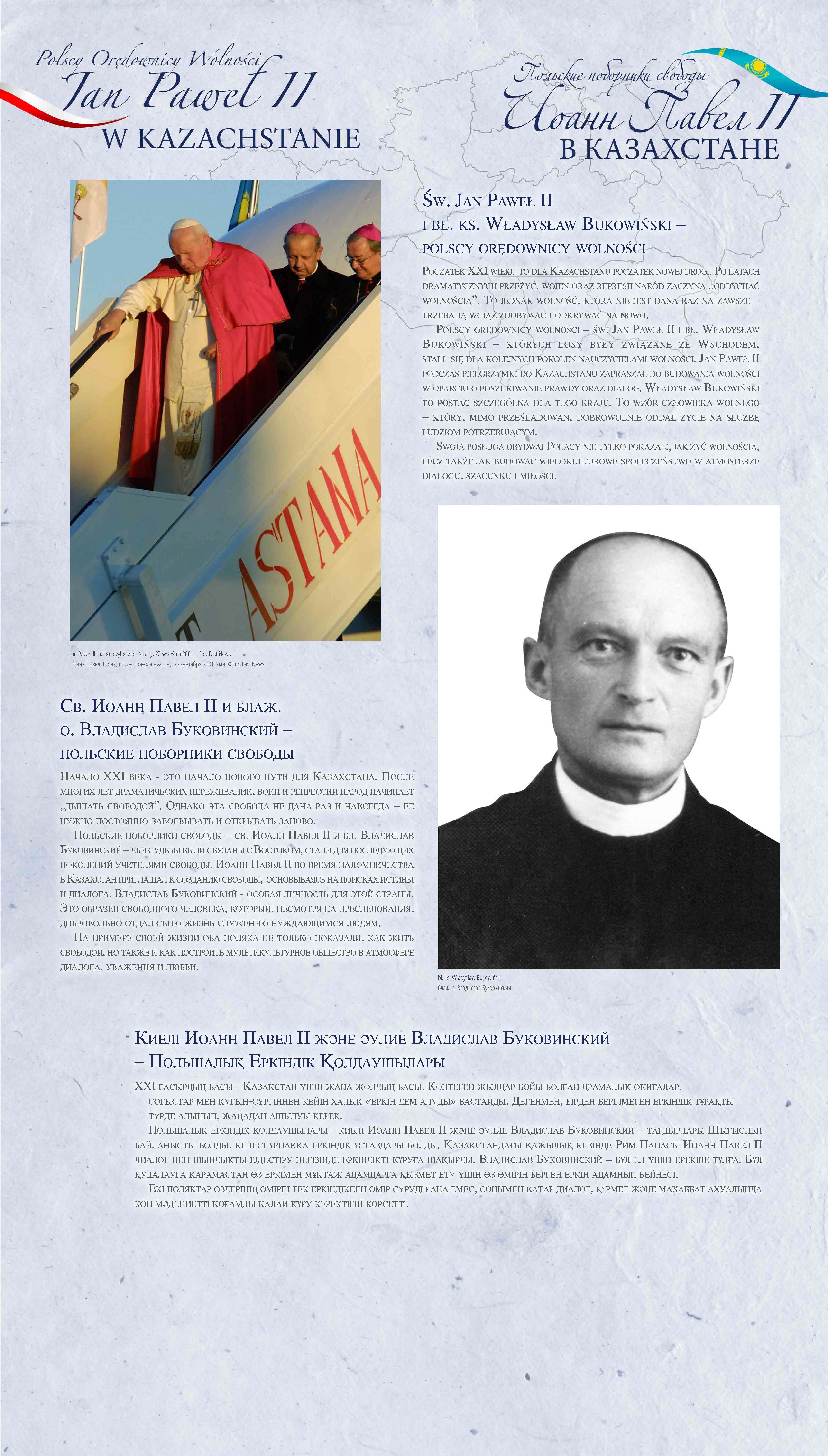 Z okazji 100. rocznicy urodzin Jana Pawła II przypominamy wyjątkową wystawę pt. „Św. Jan Paweł II i bł. Władysław Bukowiński – Polscy Orędownicy Wolności”, której uroczyste otwarcie odbyło się w Nur-Sułtanie (wówczas Astanie), w 2018 r.