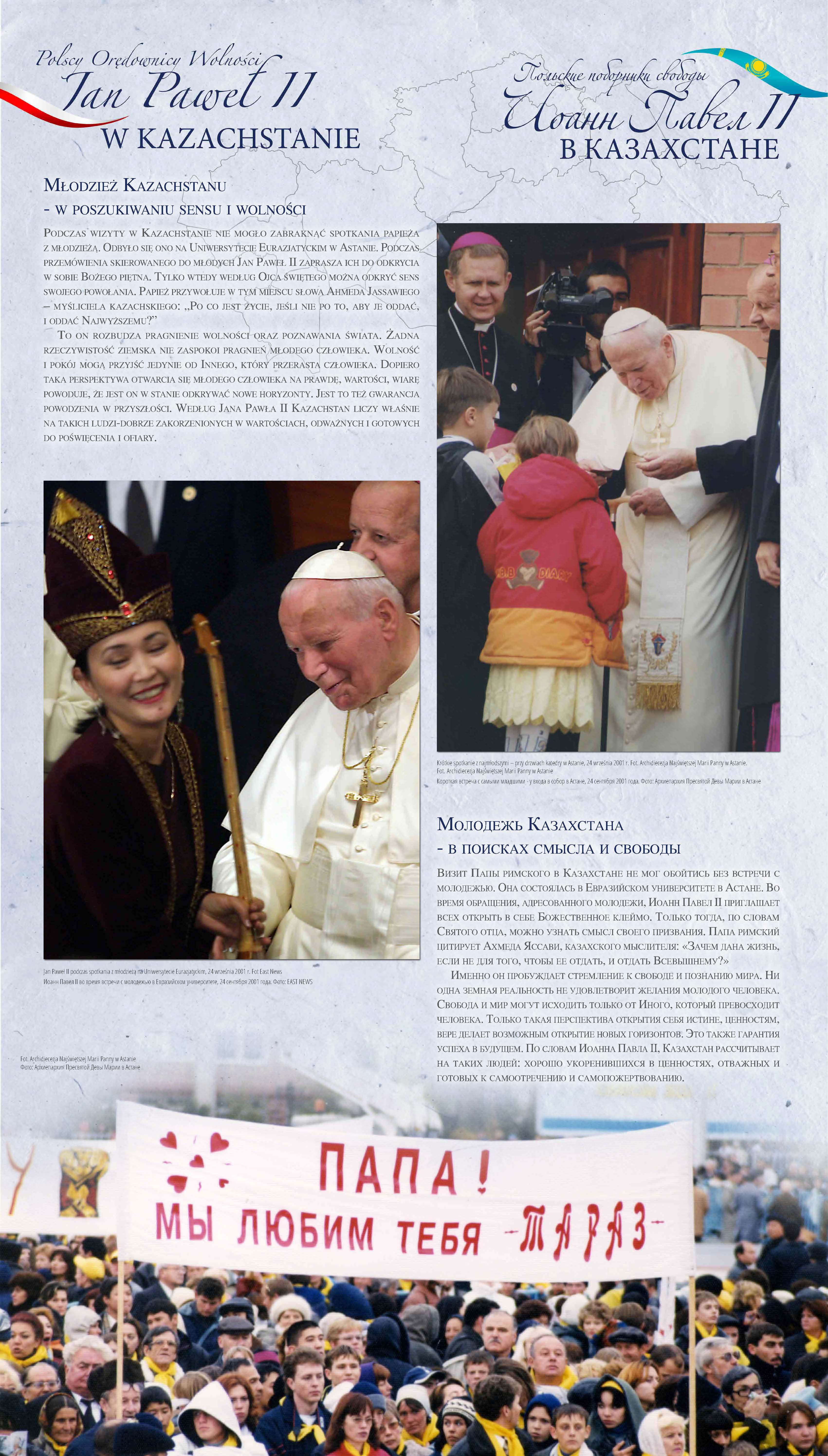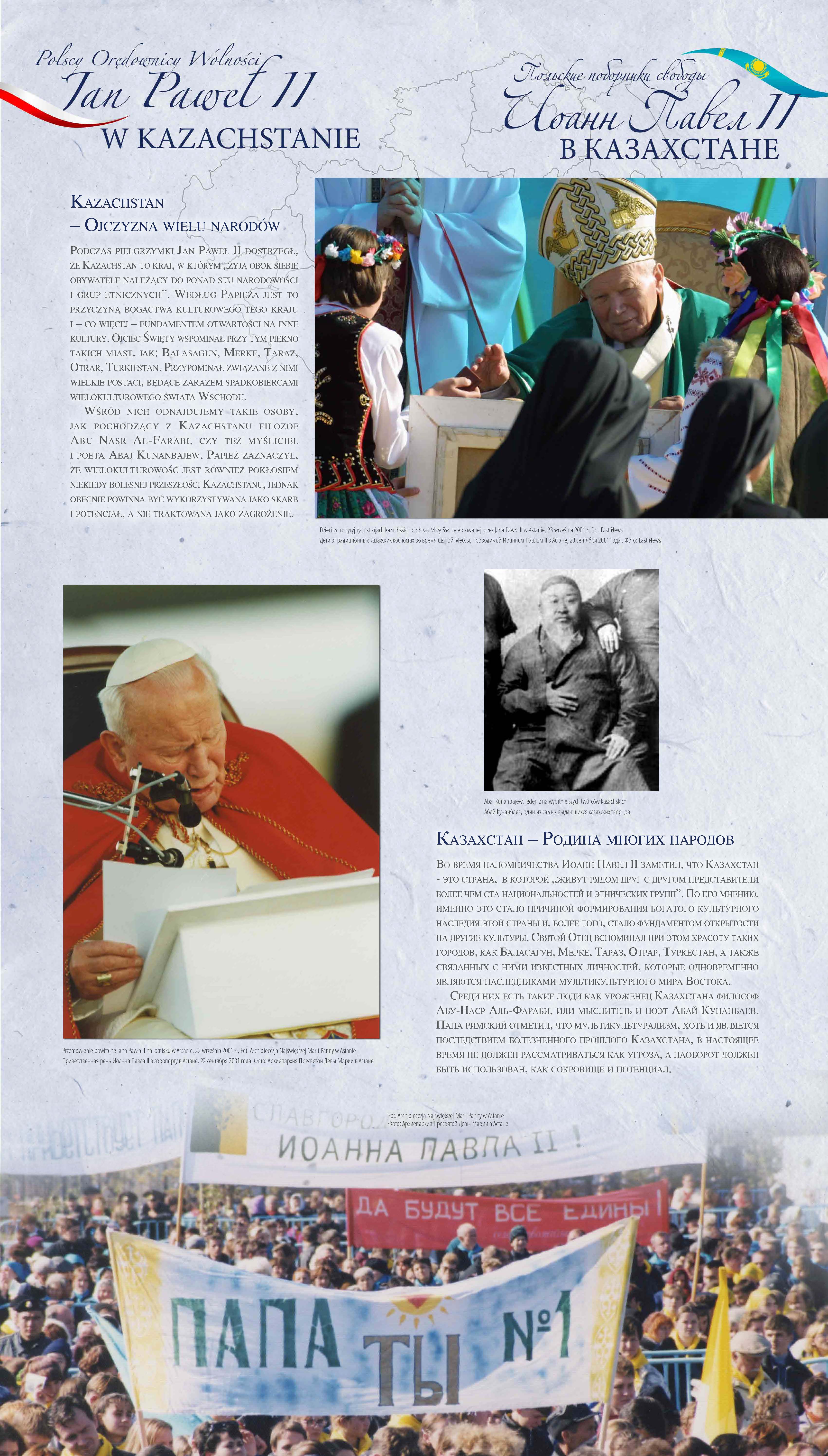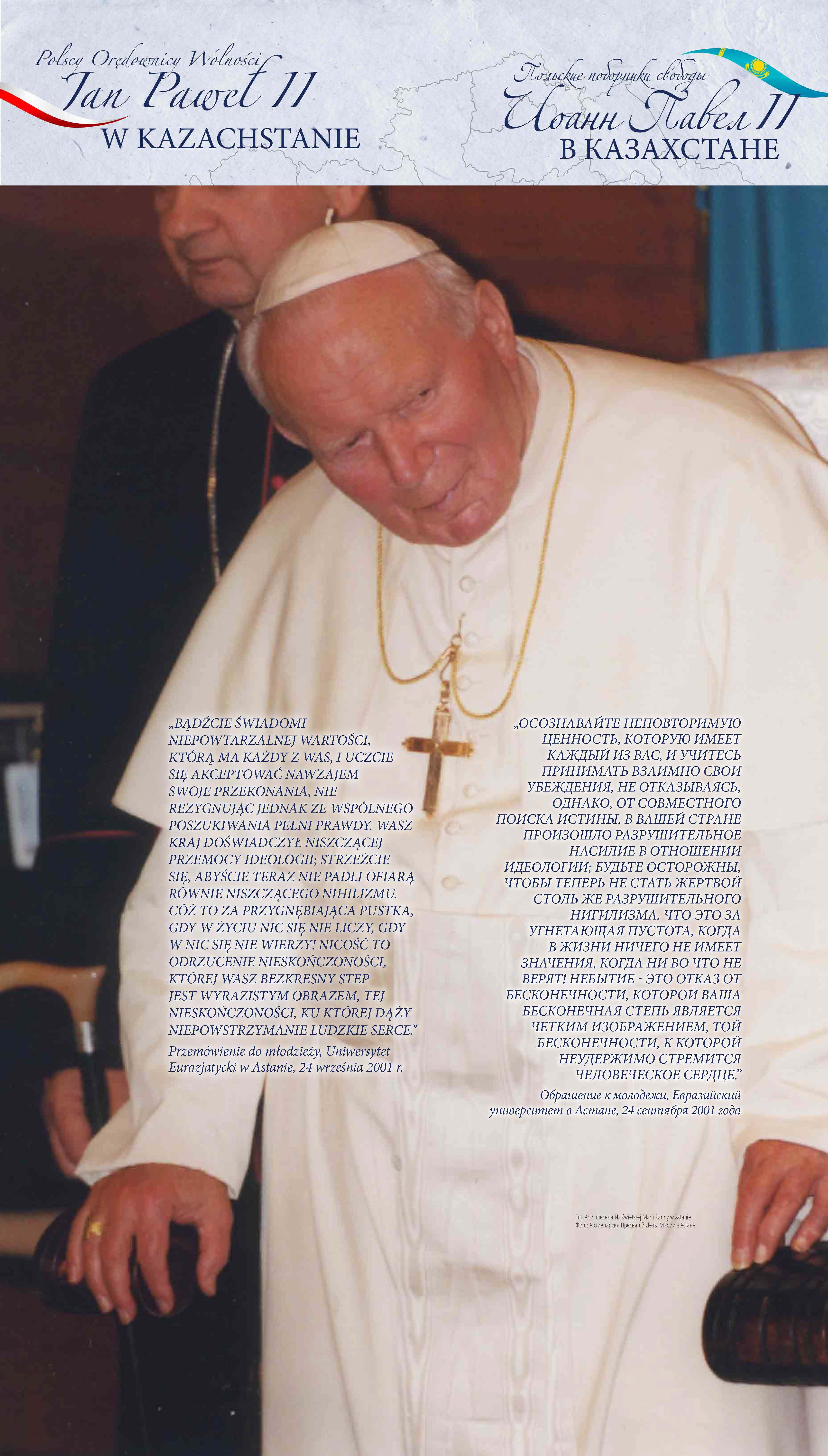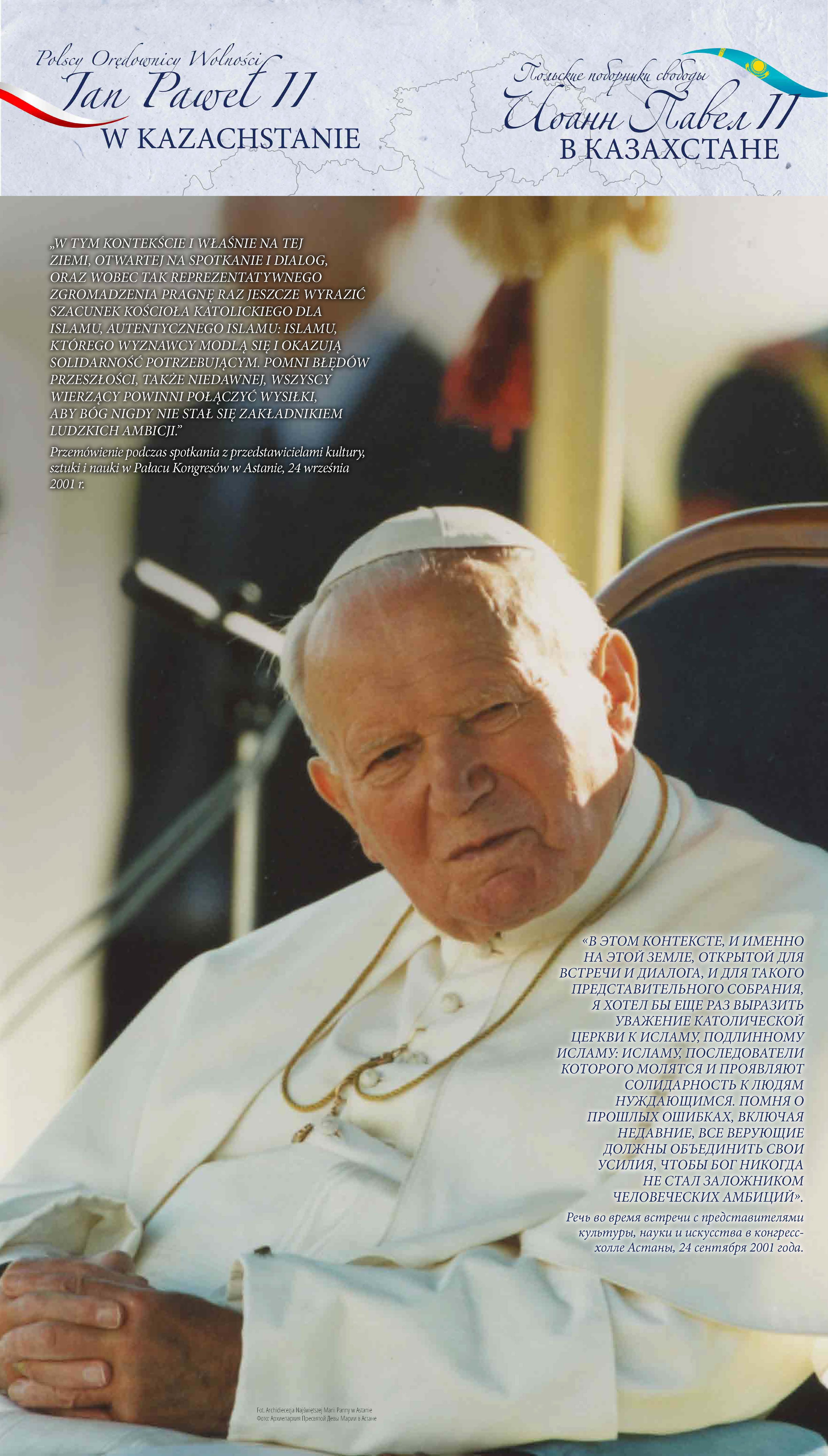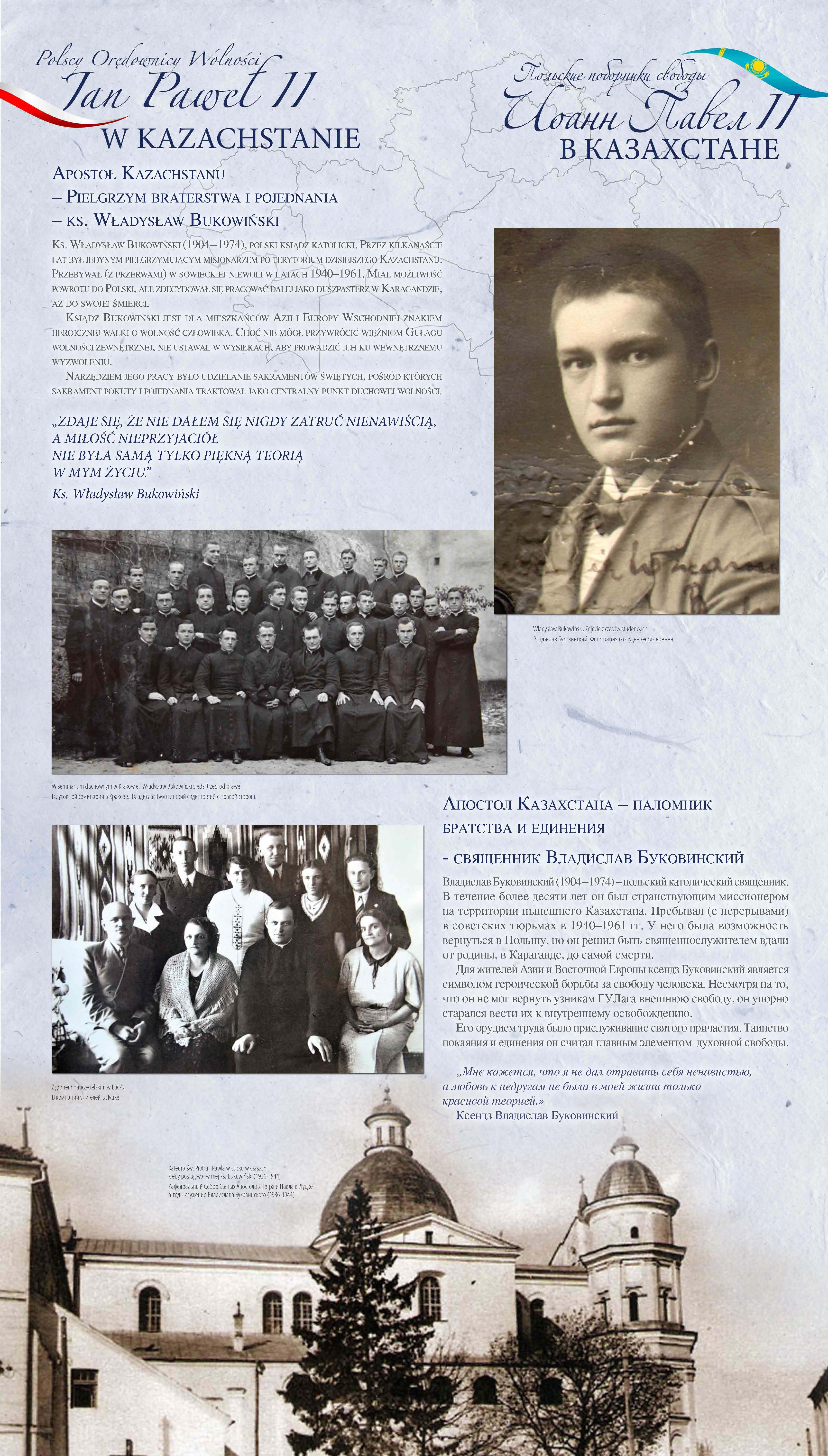 Z okazji 100. rocznicy urodzin Jana Pawła II przypominamy wyjątkową wystawę pt. „Św. Jan Paweł II i bł. Władysław Bukowiński – Polscy Orędownicy Wolności”, której uroczyste otwarcie odbyło się w Nur-Sułtanie (wówczas Astanie), w 2018 r.