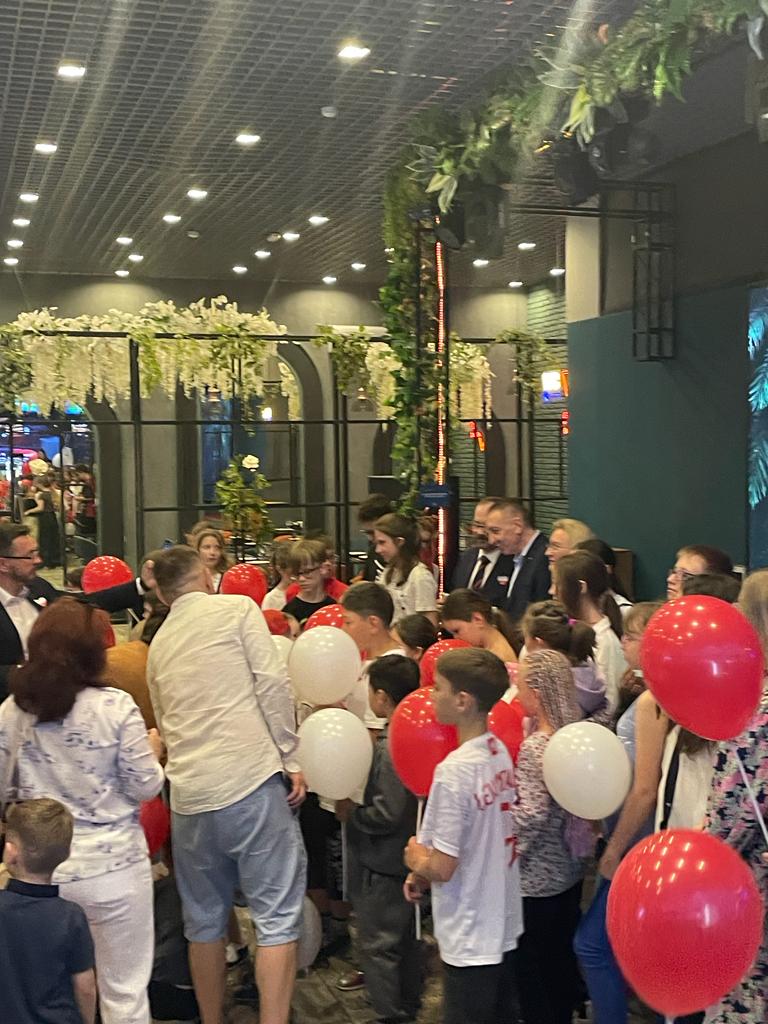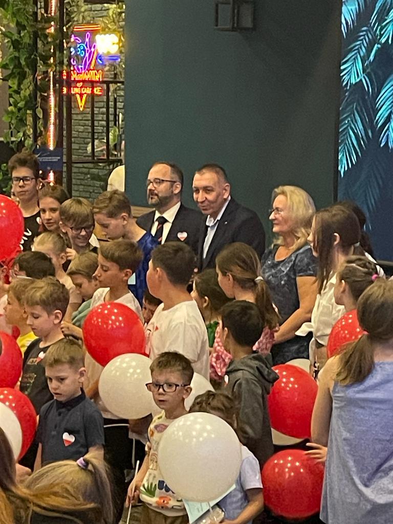 Dzieci powitali: Pan Zbigniew Ciosek, Zastępca Dyrektora Departamentu Współpracy z Polonią i Polakami za Granicą MSZ RP, Pan Grzegorz Stykowski Konsul RP, pracownicy DWPPG MSZ RP Pani Justyna Kazana-Dobrzeniecka i Pan Jacek Żur, konsul Pani Monika Łaskarzewska-Łuckiewicz.