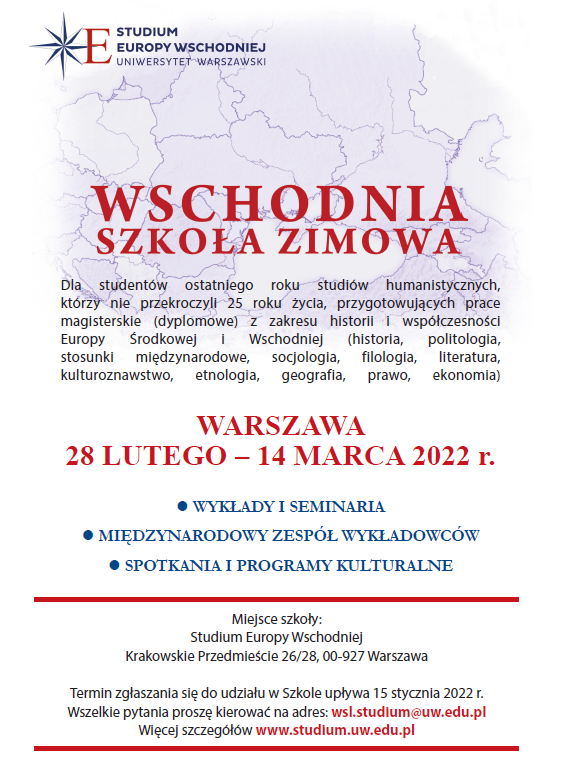 Wschodnia Szkoła Zimowa odbędzie się w Warszawie w dniach 28 lutego – 14 marca 2022 r.