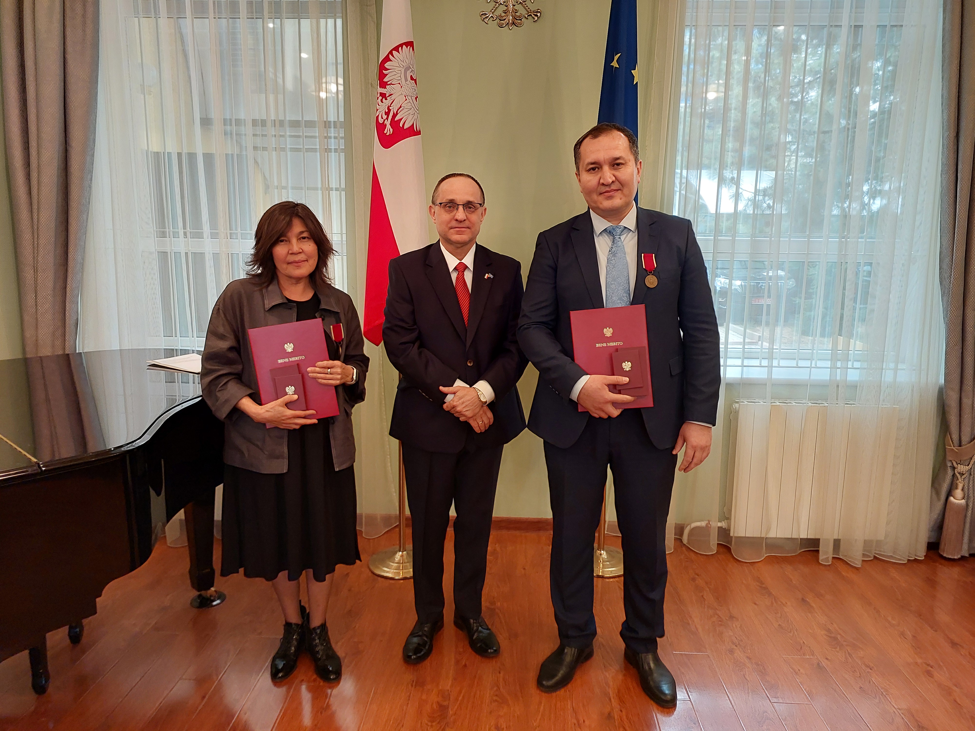 Odznaka Honorowa „Bene Merito” przyznawana jest za działalność wzmacniającą pozycję Polski na arenie międzynarodowej. Decyzją Ministra Spraw Zagranicznych odznaczenie nadano p. Zhandos Karinbayev, p. Manara Kalybekova, p. Kairat Alimgazinov.