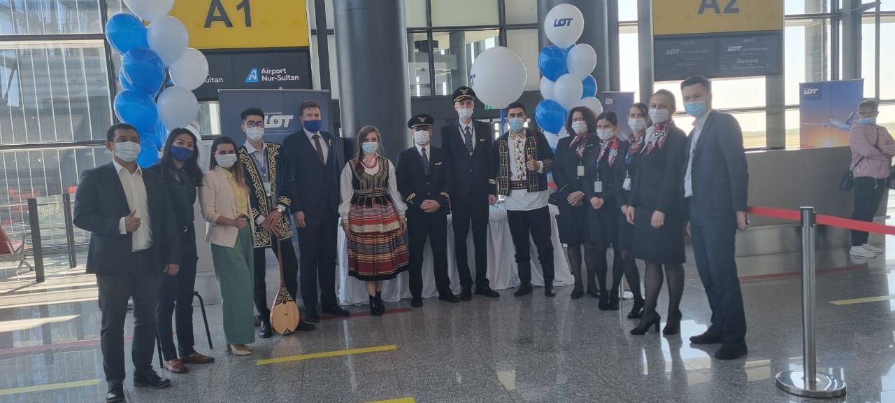 В Международном Аэропорте им. Нурсултана Назарбаева в Нур-Султане состоялось торжественное мероприятие по случаю возобновления рейсов по направлению Польша-Казахстан-Польша с участием представителей Посольства Республики Польша и Полонии в Нур-Султане, руководства аэропорта и представителей Польских Авиалиний в Казахстане.