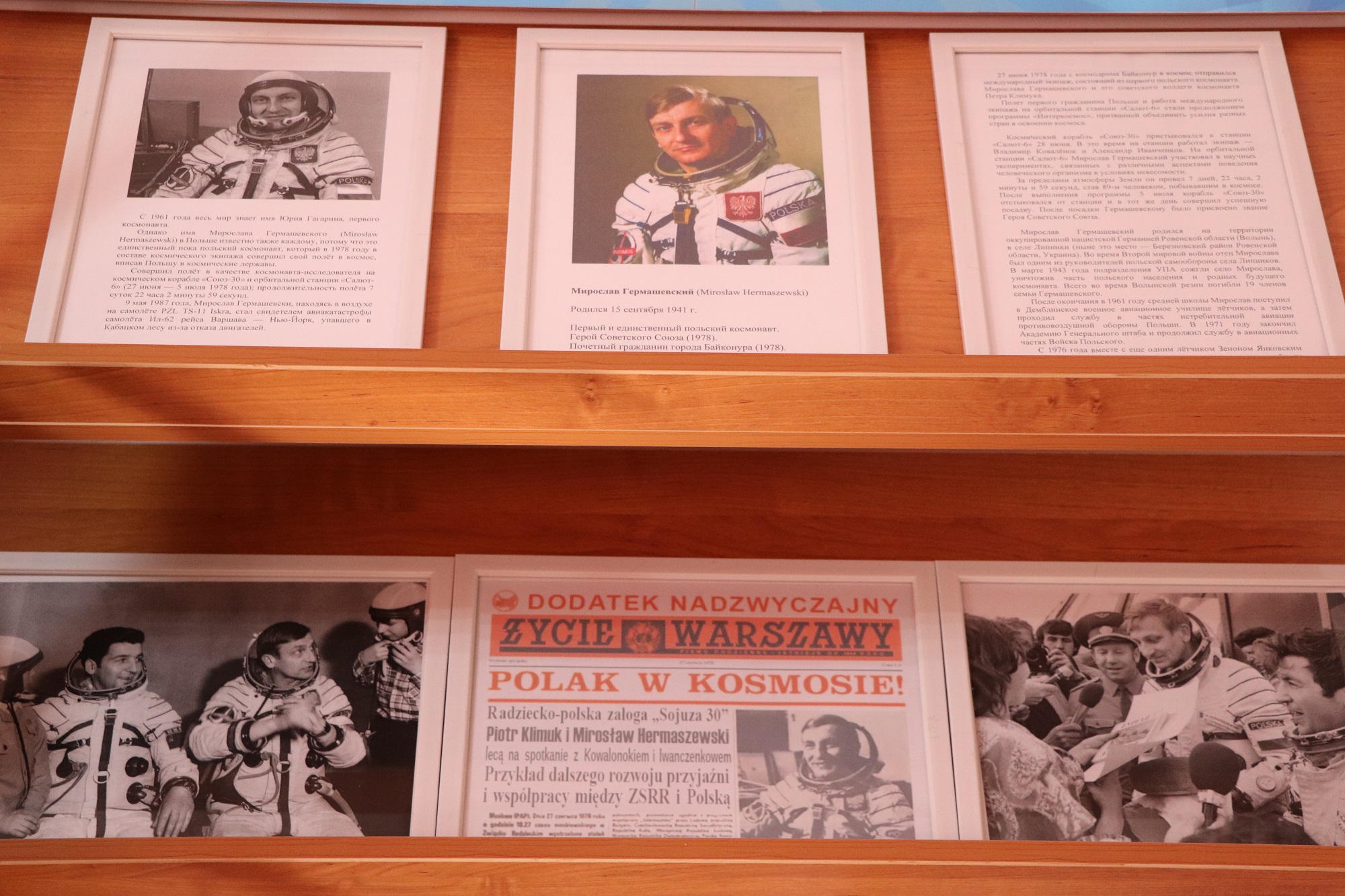 Вторая - фотовыставка, посвященная первому польскому космонавту Мирославу Гермашевскому, которому в этом году исполняется 80 лет. 27 июня 1978 года Мирослав Гермашевский как первый и пока единственный поляк полетел в космос на корабле «Союз-30» с космодрома Байконур.