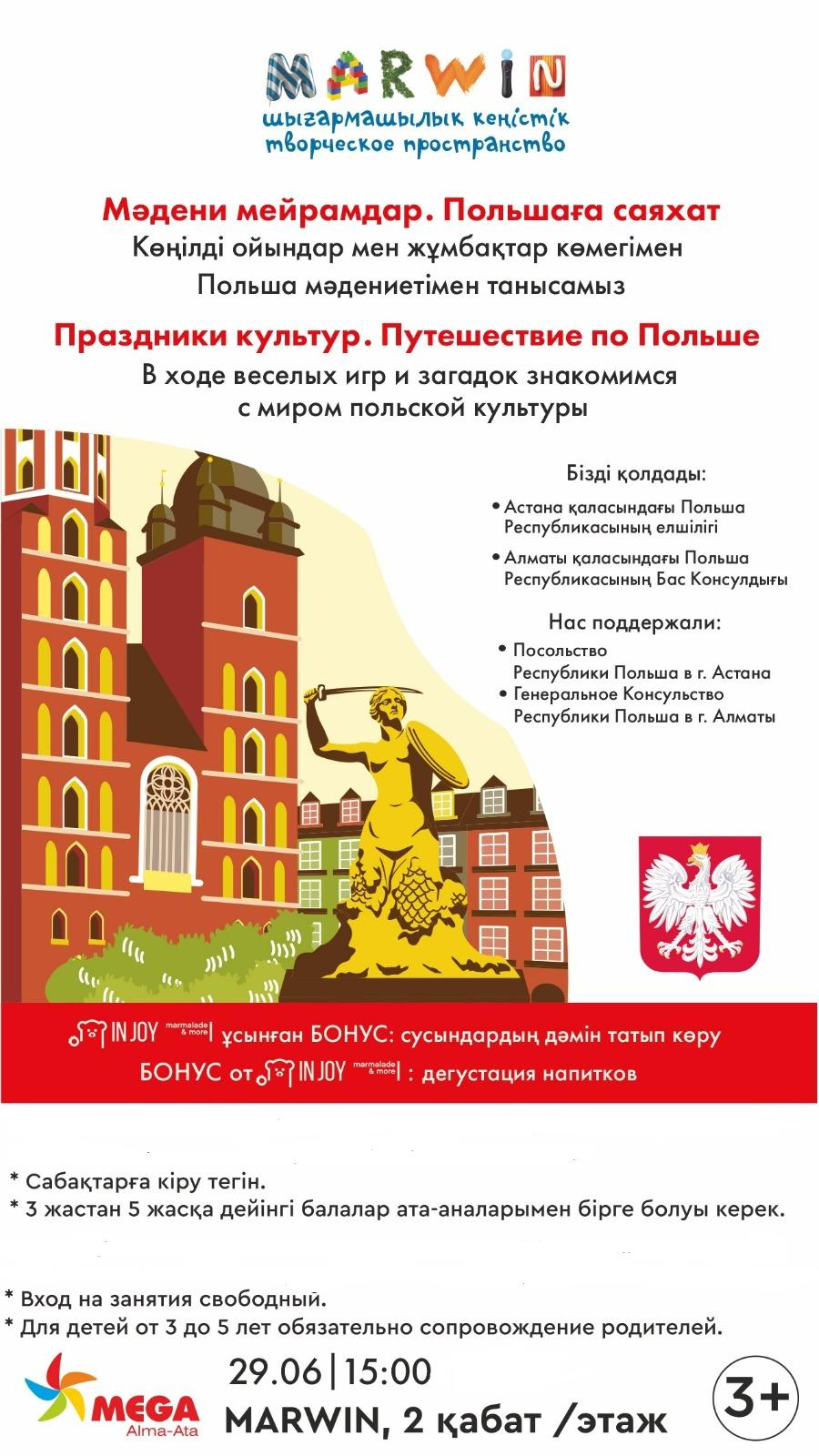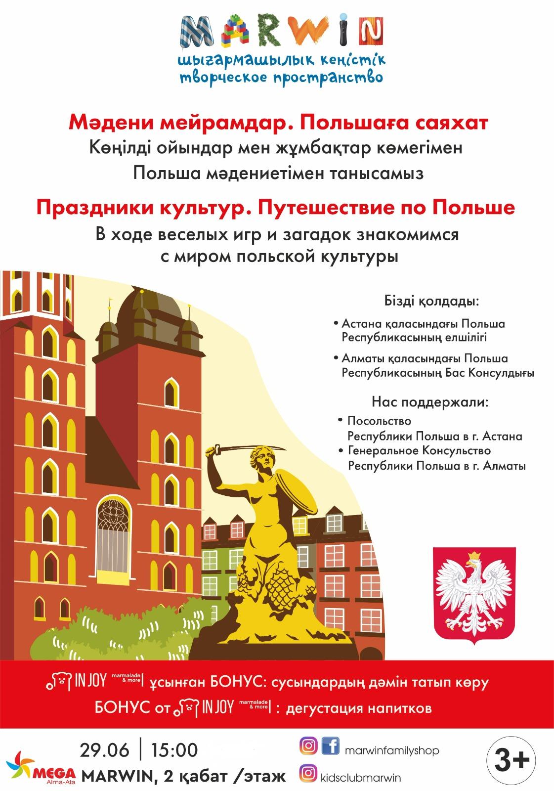 KG RP в Алматы совместно с компанией MARWIN приглашает на Фестиваль Культуры – Путешествие по Польше 29 июня 2024 года.