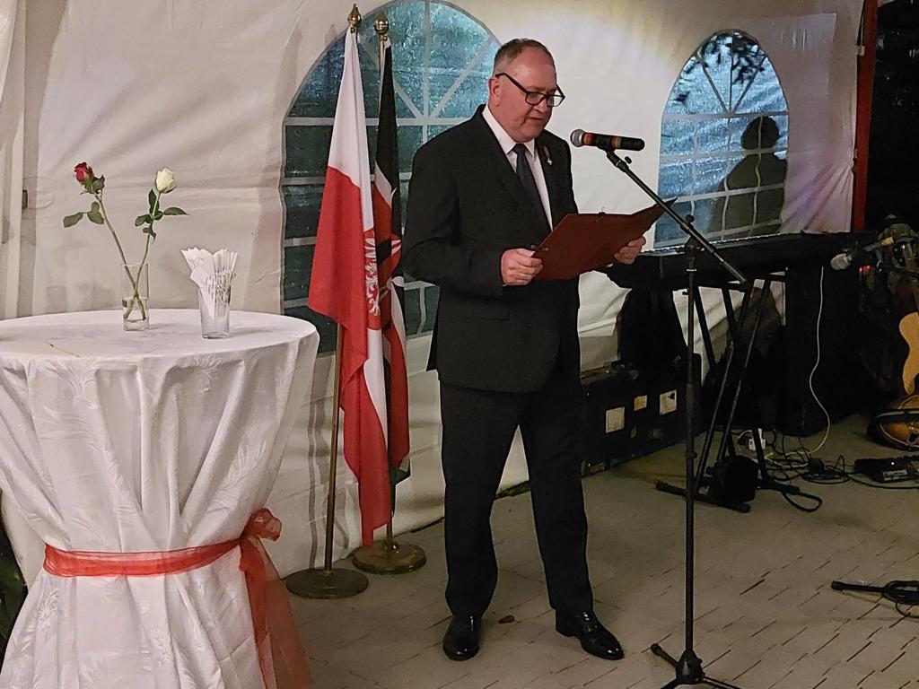 Zespól Ambasady Polskiej w Nairobi wraz z kenijską Polonią oraz osobami współpracującymi z ambasadą RP wspólnie świętowali 105. rocznicę odzyskania przez Polskę niepodległości. W uroczystości wzięło ok. 100 osób w tym delegacja polskiego biznesu uczestnicząca w tych dniach w targach handlowych w Nairobi. Uczestnicy uroczyście odśpiewali „Mazurka Dąbrowskiego”, następnie w przemówieniu Mirosław Gojdź ambasador RP stwierdził: „11 listopada składamy hołd tym wszystkim, którzy przyczynili się do odzyskania przez Polskę niepodległości po 123 latach zaborów. Doceniamy dorobek wybitnych „Ojców Niepodległości", ale także milionów zwykłych Polaków, którzy na przestrzeni lat bronili swojej suwerenności. W tym roku ponownie nasze myśli kierujemy w stronę Ukrainy, bohatersko walczącej z rosyjskim agresorem”. Narodowy Dzień Niepodległości jest zawsze związany ze wspólnym śpiewaniem pieśni patriotycznych. Nawiązując do tradycji wspólnie śpiewano pieśni, które w na przestrzeni lat niosły różne pokolenia do walki o niepodległość. Uczestnicy uznali spotkanie za wyjątkowo udane.