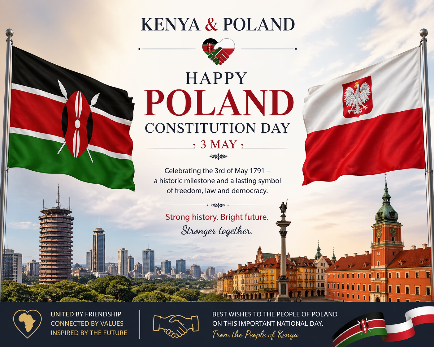 23 kwietnia 2026 r. Ambasada RP w Nairobi wydała uroczyste przyjęcie z okazji Święta Narodowego 3 Maja, w którym udział wzięło ok. 150 osób reprezentujących tutejszy CD, w tym szefowie placówek dyplomatycznych i ich zastępcy, Dyrektor Generalna UNON, Dyrektor Wykonawcza UN-HABITAT, przedstawiciele miejscowych władz, środowisk gospodarczych i opiniotwórczych oraz reprezentatywna grupa kenijskiej Polonii.