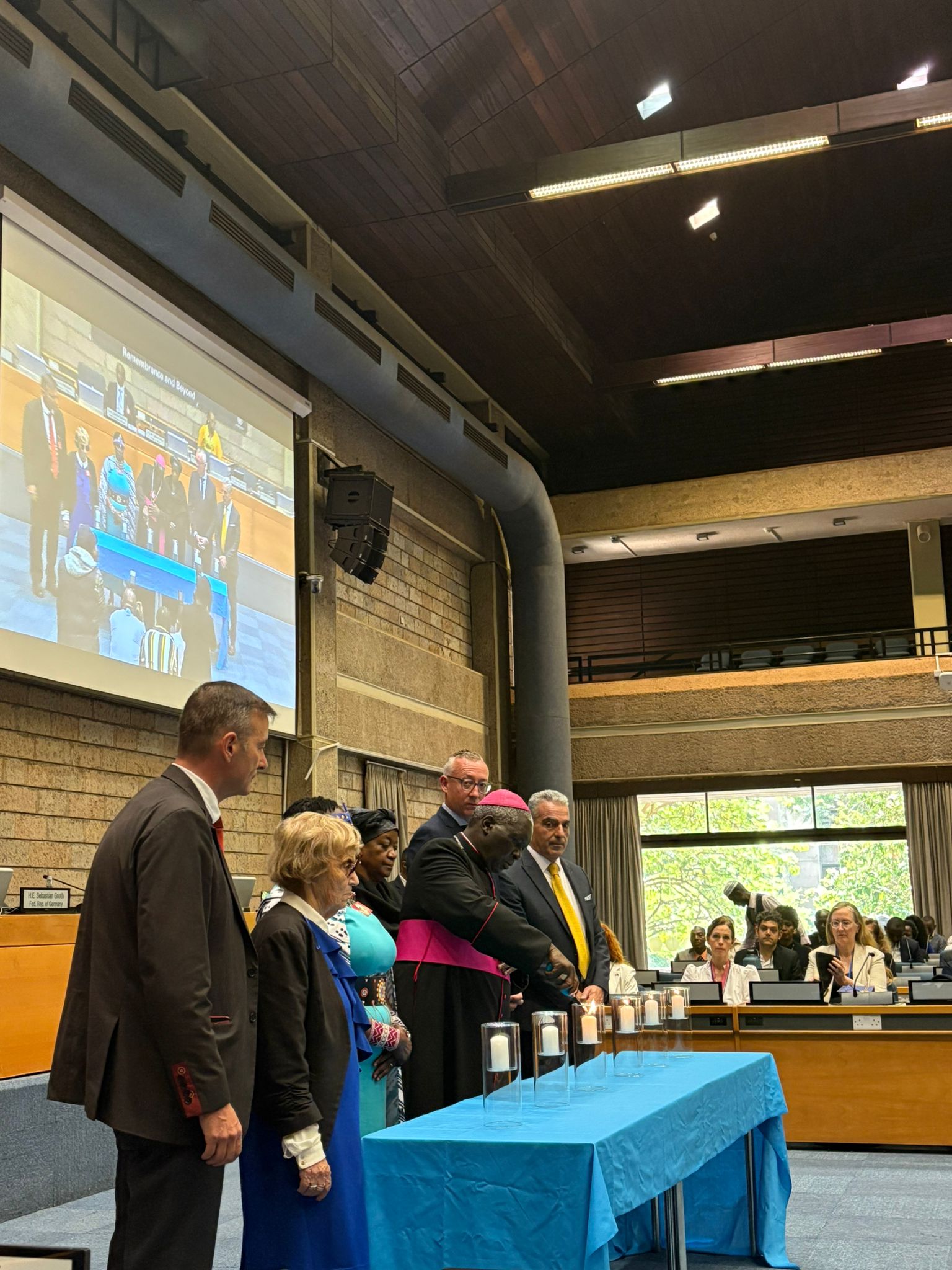 Keynote speakers included Zainab Hawa Bangura, Director-General of the UN in Nairobi; Gideon Behar, Ambassador of Israel to Kenya; Sebastian Groth, Ambassador of Germany; David Silverstein, President of the Hebrew Congregation in Nairobi; Director Lindsay Kiptiness of the Ministry of Foreign Affairs and Diaspora of the Republic of Kenya; and invited guests included members of the diplomatic corps in Kenya and students.