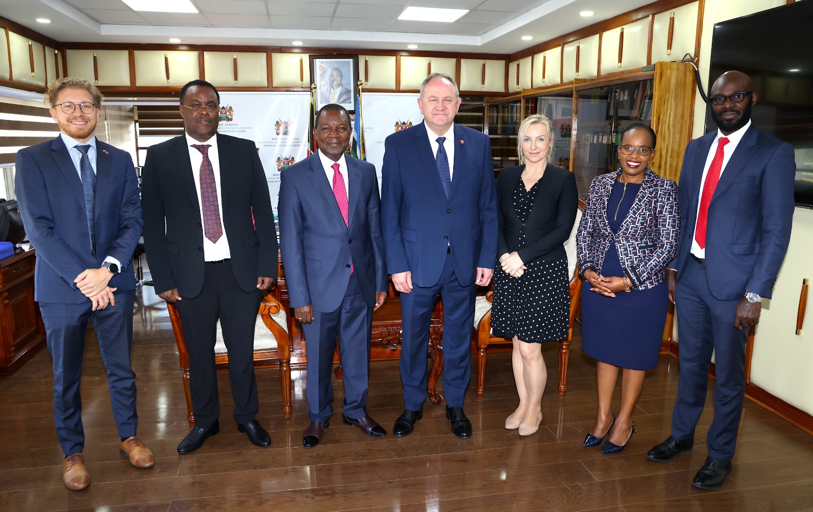 The activity of the Embassy of the Republic of Poland in strengthening bilateral economic cooperation resulted in a number of ministerial invitations. On August 24, 2023, at the invitation of the Kenyan side, the Polish delegation consisting of representatives of the Embassy of the Republic of Poland and the Kenyan branch of Polish Investment and Trade Agency was received by prof. Njugun Ndung, Minister of Treasury and Economic Planning, equivalent to the Polish Minister of Finance and Treasury.