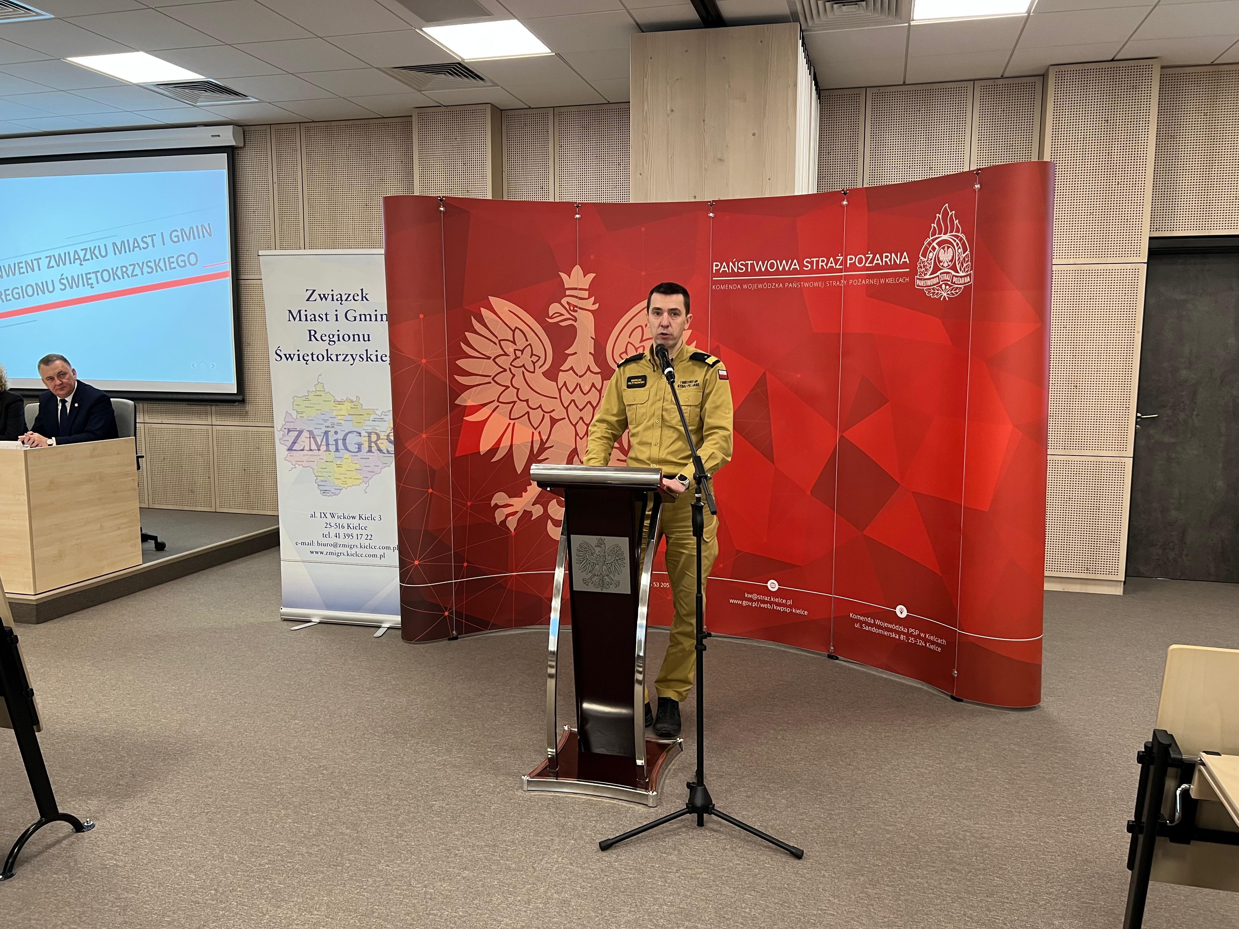 4 lutego 2025 roku w województwie świętokrzyskim upłynął pod znakiem wydarzeń organizowanych przez Komendę Wojewódzką Państwowej Straży Pożarnej w Kielcach. Od godziny 10:00 świętokrzyscy strażacy wspólnie z samorządowcami z regionu oraz przedstawicielami służb debatowali na temat bezpieczeństwa pożarowego budynków mieszkalnych. Konferencja zorganizowana przy współpracy Komendy Wojewódzkiej Państwowej Straży Pożarnej w Kielcach, Związku Miast i Gmin Regionu Świętokrzyskiego oraz Wydziału Prawa i Nauk Społecznych Uniwersytetu Jana Kochanowskiego była okazją do przedstawienia przez komendanta głównego PSP nadbryg. Mariusza Feltynowskiego problemu pożarów w budynkach mieszkalnych w ujęciu krajowym. Świętokrzyski komendant wojewódzki PSP nadbryg. Krzysztof Ciosek zaprezentował szczegółowe dane dotyczące omawianego zagrożenia dla regionu. Po szerokim omówieniu problemu, zaprezentowany został również pionierski projekt kampanii społecznej „Bądź Czujny – Bezpieczna Gmina”. Założenia kampanii przybliżył rzecznik prasowy świętokrzyskiego komendanta wojewódzkiego PSP st. kpt. Marcin Bajur. Projekt, zakładający wyposażenie w czujniki dymu mieszkańców regionu, spotkał się z zainteresowaniem samorządowców i niewykluczone, że w najbliższym czasie będziemy mogli zobaczyć pierwsze efekty.