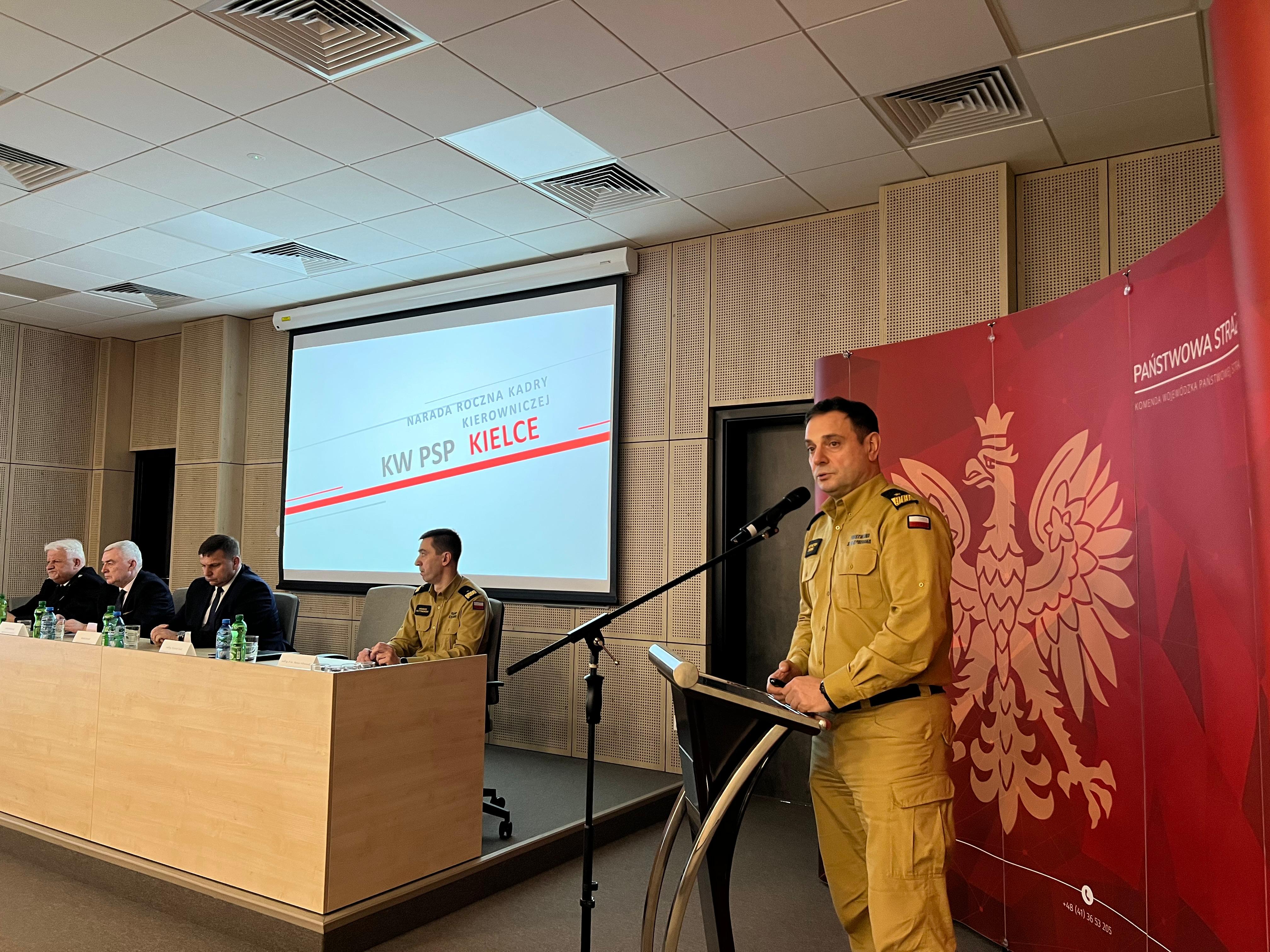 Świętokrzyscy strażacy podsumowali 2024 rok. Doroczna narada kadry kierowniczej Państwowej Straży Pożarnej z terenu województwa świętokrzyskiego została zorganizowana w gościnnych murach Wydziału Prawa i Nauk Społecznych Uniwersytetu Jana Kochanowskiego w Kielcach. Rangę wydarzenia podniosła obecność komendanta głównego Państwowej Straży Pożarnej nadbryg. dr. inż. Mariusza Feltynowskiego, który wziął również udział w Konwencie Związku Miast i Gmin Regionu Świętokrzyskiego, jaki poprzedził strażacką naradę.