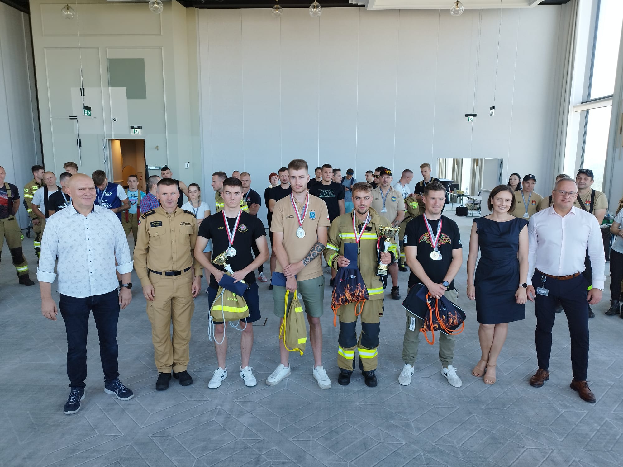 Wręczenia medali, pucharów i nagród dokonali: st. bryg. Bartłomiej Mollin - zastępca pomorskiego komendanta wojewódzkiego PSP, Rafał Recław i Janusz Murasicki - dział zarządzania bezpieczeństwem Olivia Centre oraz przedstawiciele instytucji, które wsparły organizację zmagań strażaków.