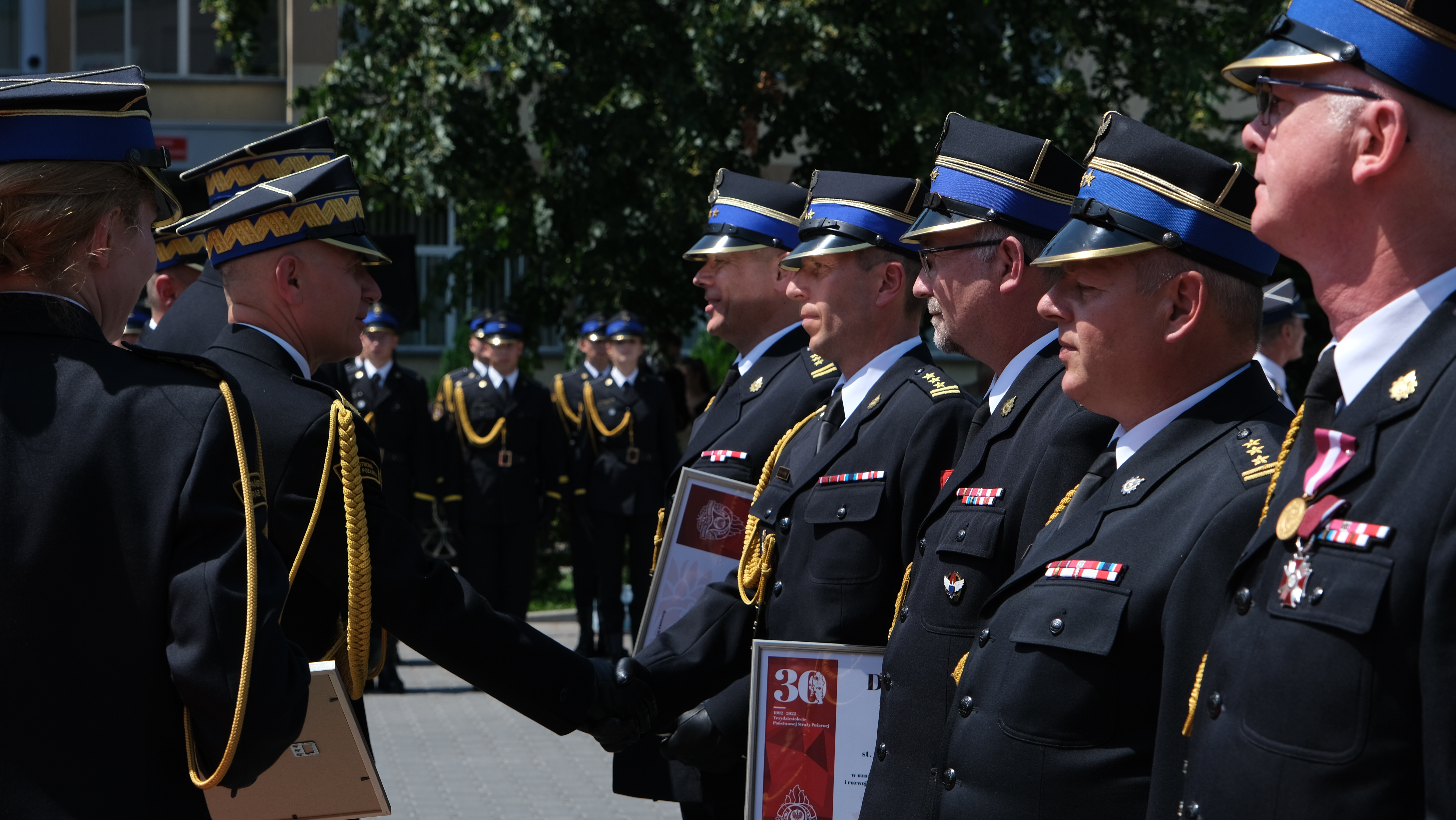 „Szanowni Państwo, to nieprzypadkowo spotykamy się dziś, 1 lipca... W 1992 r. 1 lipca zaczęła obowiązywać tak realnie ustawa o Państwowej Straży Pożarnej i od tego momentu właśnie mija 30 lat” – powiedział komendant główny PSP gen. brygadier Andrzej Bartkowiak, witając przybyłych na uroczystość gości.