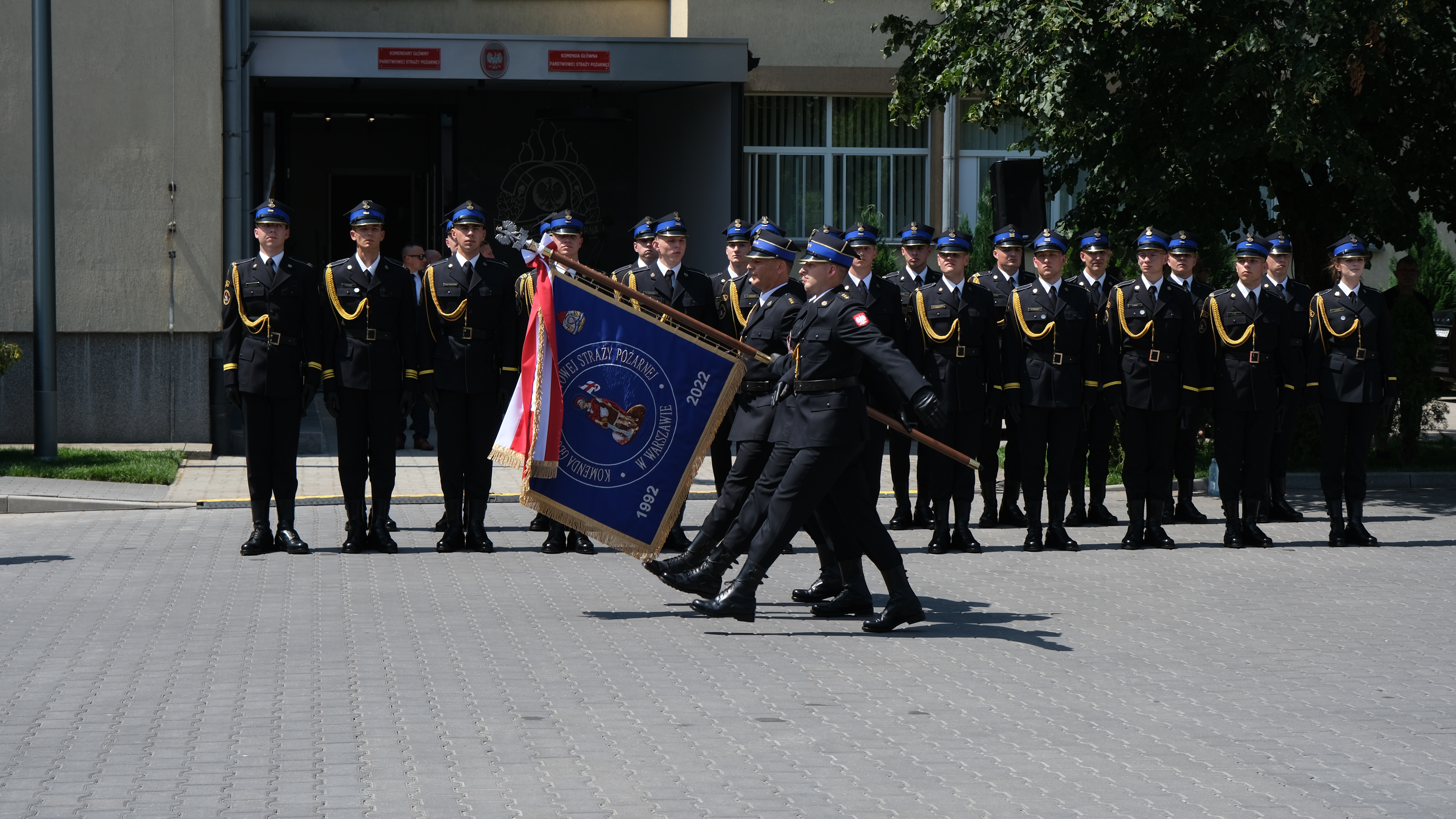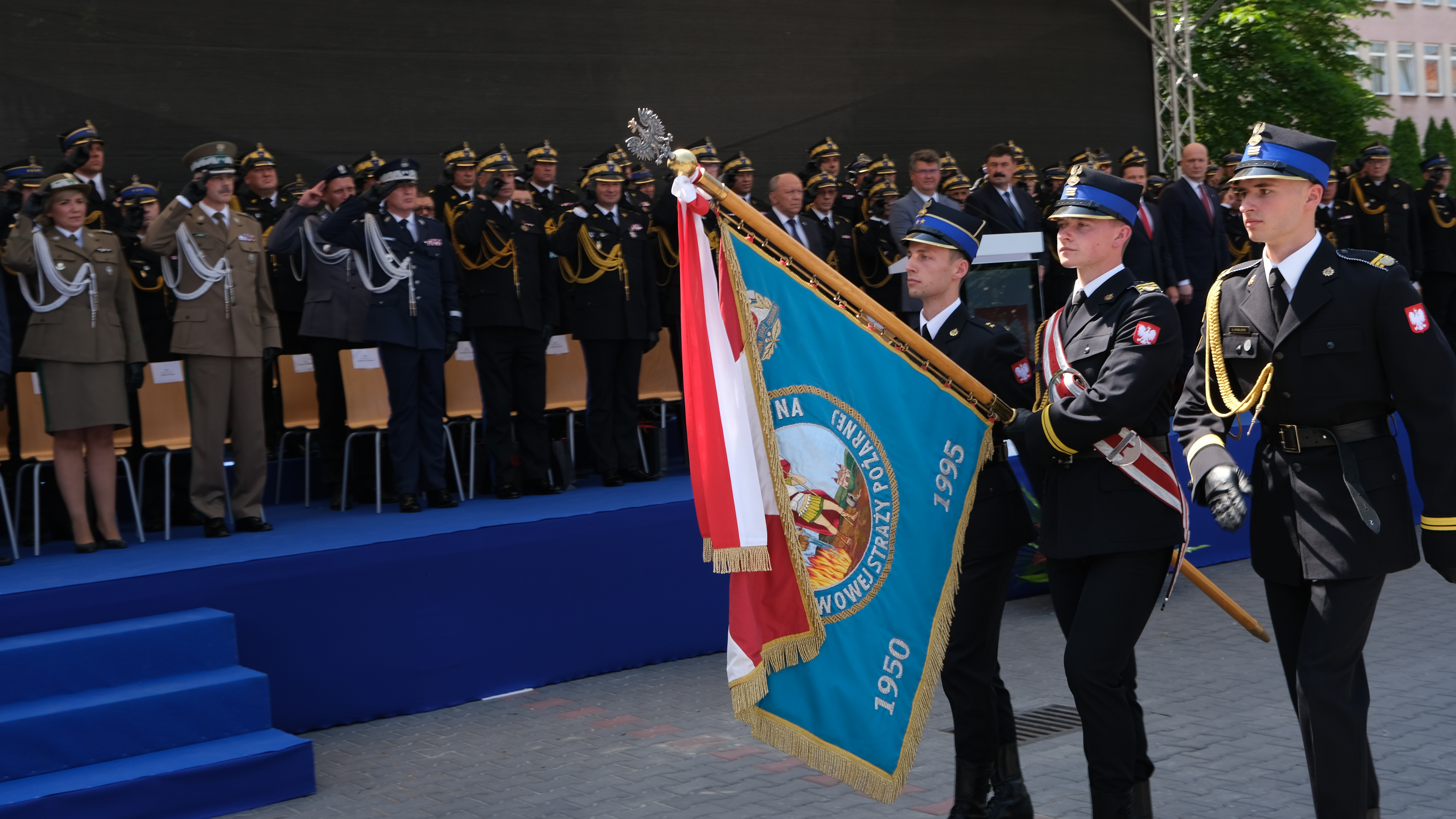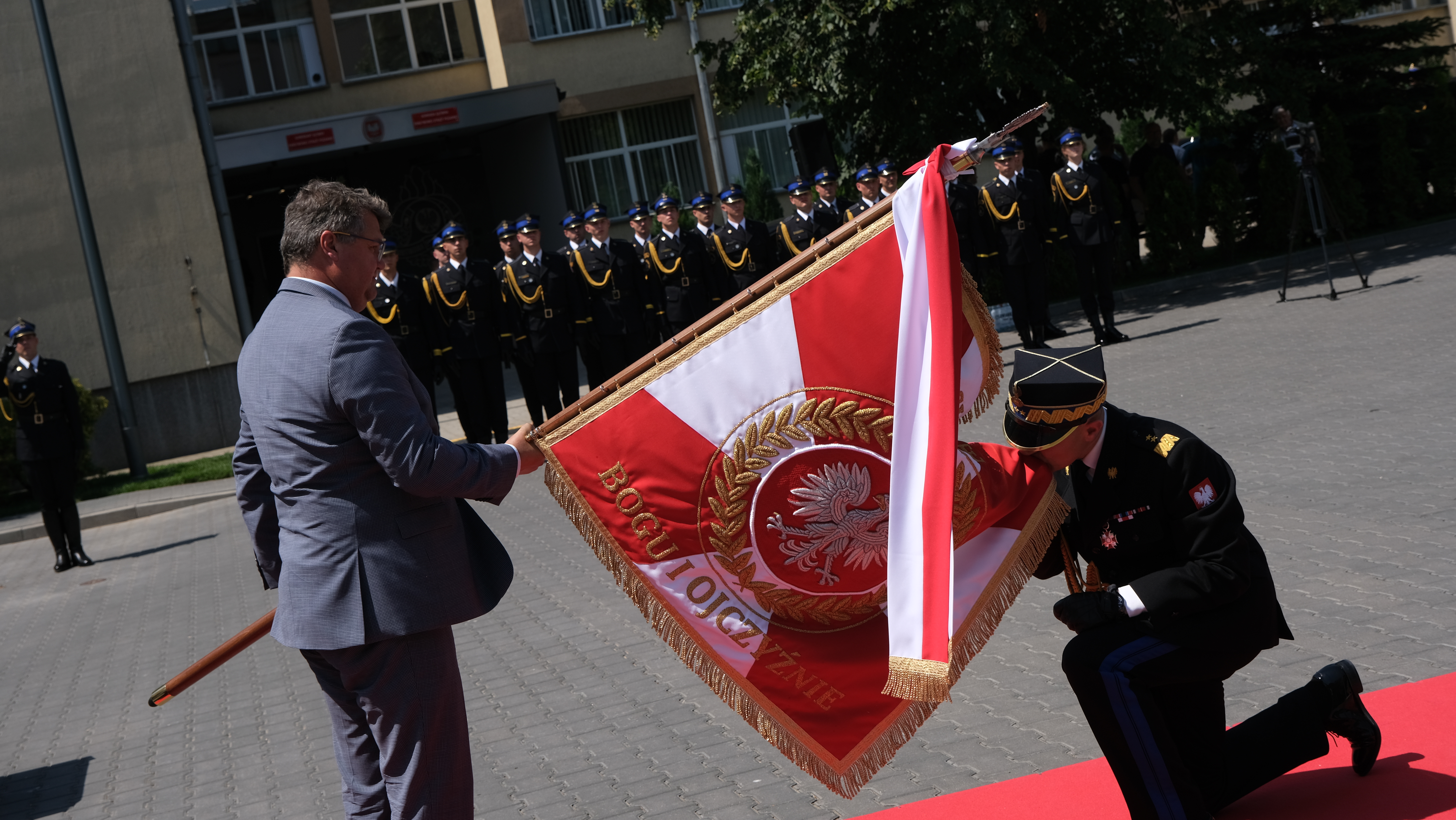 Szczególnym momentem uroczystości było pożegnanie dotychczasowego sztandaru Komendy Głównej PSP oraz nadanie nowego. Do tego ważnego momentu nawiązał w swojej wypowiedzi gen. brygadier Andrzej Bartkowiak słowami: