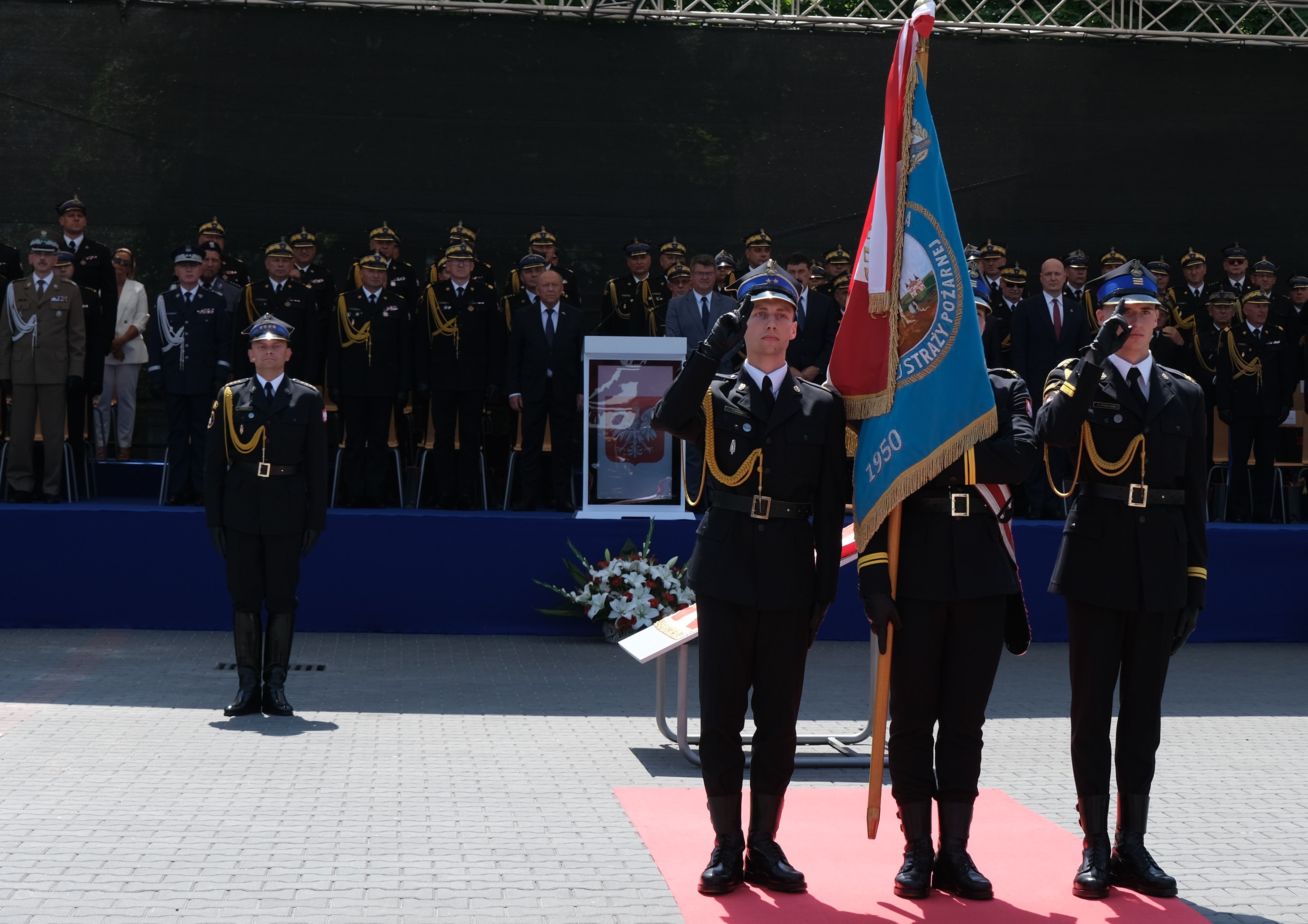 30 lat powołania Państwowej Straży Pożarnej uhonorowano nadaniem nowego sztandaru dla KG PSP oraz odsłonięciem Ściany Pamięci poległych strażaków
