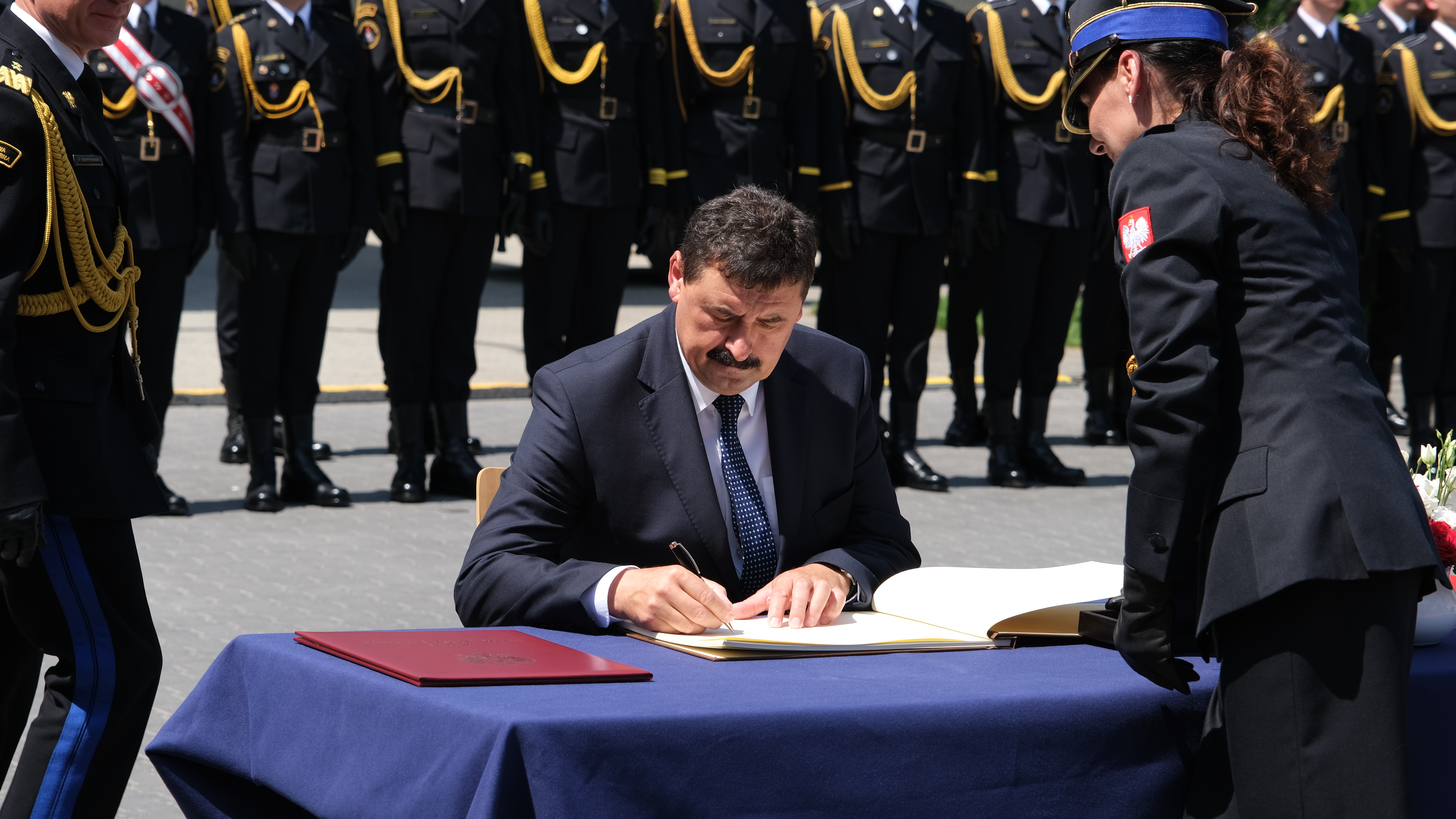 Meldunek o rozpoczęciu uroczystości przyjął sekretarz stanu w Ministerstwie Spraw Wewnętrznych i Administracji Pan Maciej Wąsik, po czym w asyście dowódcy uroczystości dokonał przeglądu i przywitał się z pododdziałami.